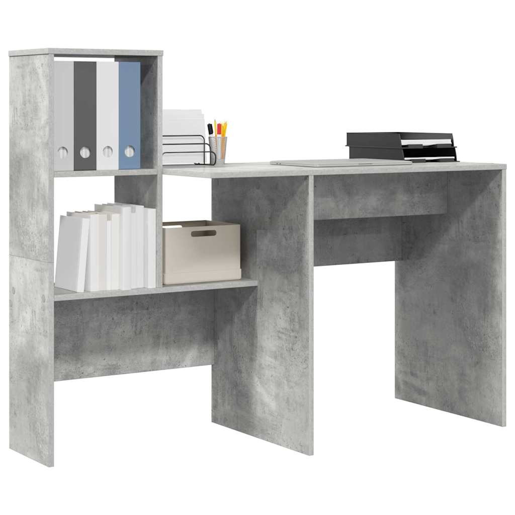 Asztal polcokkal Beton szürke 131.5 x 50 x 106.5 cm Faanyag