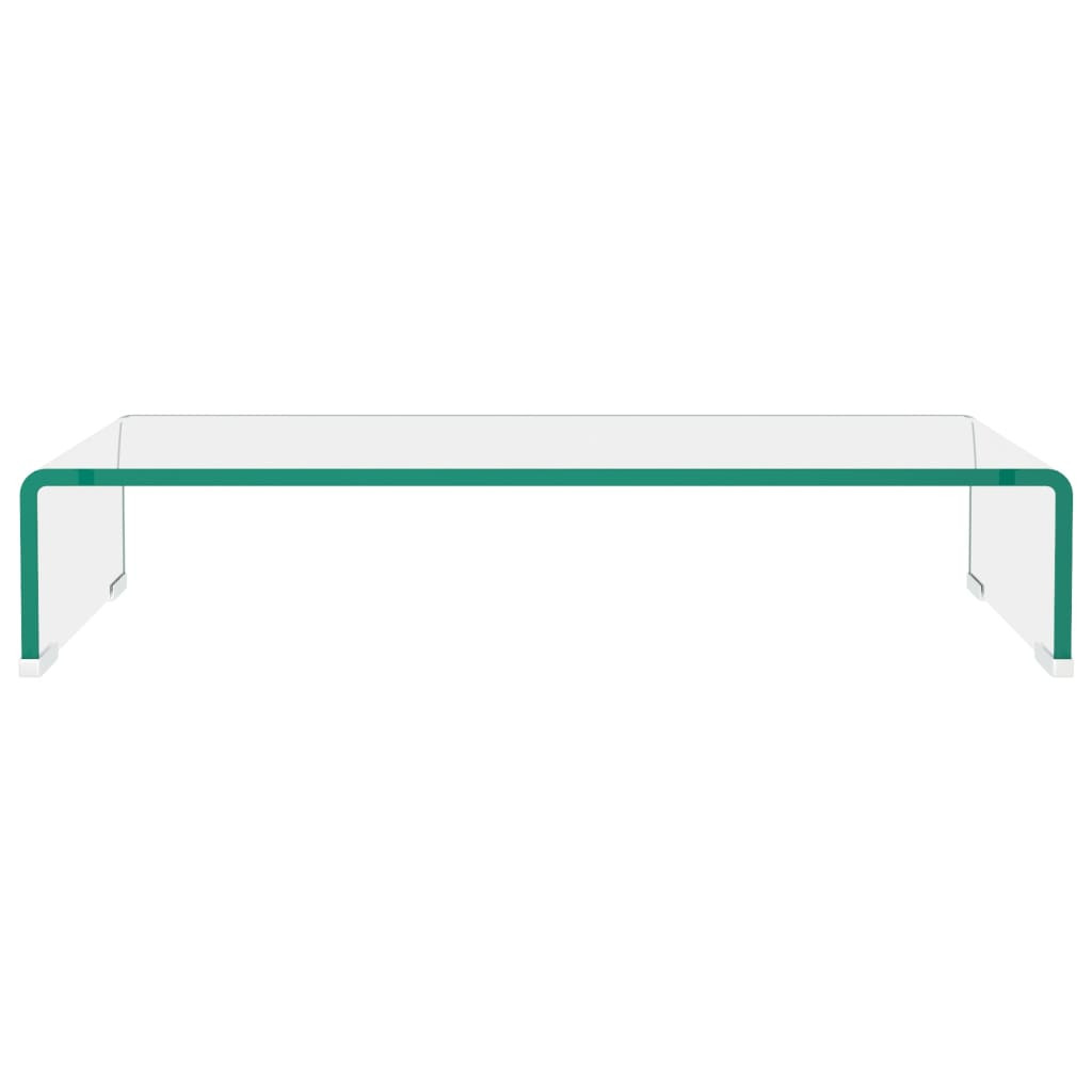 Ez a praktikus TV állvány edzett üvegből készült. Sikkes, áramvonalas kialakításával ez a visszafogott állvány modern stílust kölcsönöz a szobának. Ezt az üveg asztalt használhatja TV állványként vagy asztali számítógép monitor tartóként, elhelyezhet rajta televíziót, laptopot vagy egyéb szórakoztató elektronikai berendezéseket. Erre az üveg tartóra helyezve képernyőjét jobb rálátást érhet el, kényelmesebben ülve; ezzel csökkentheti a nyakára és hátára irányuló terhelést. Az üveglap alatt elhelyezheti DVD lejátszóját, játékkonzolját, streaming készülékét és egyéb szórakoztató elektronikai berendezéseit. Az üveg keret edzett az erősség és biztonság érdekében. A sima felületet könnyű tisztítani egy nyirkos ronggyal.