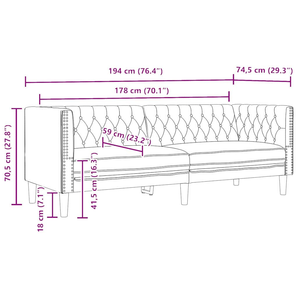 A Chesterfield kanapé összeköti a hagyományos bájt a modern kényelemmel, egy csipet klasszikus eleganciát adva bármilyen lakótérhez. A jellegzetes mély gombokkal díszített kárpitozás és a kör alakú karfák kellemes hangulatot teremtenek, ideálisak olvasáshoz vagy barátok fogadásához. Karcsú és jól megtervezett dizájnja barátságos légkört teremt, így népszerű választás nappalikba és hálószobákba. Középpontként és kényelmes menedékként funkcionál, könnyedén illeszkedik a különféle otthoni stílusokhoz, sokoldalú darab a benti dizájnodhoz. Műbőr anyag: A kanapé prémium műbőrből készült, ami klasszikus kinézetet és tartósságot ad. Ez az anyag bírja a napi használatot, így hosszú távon is jól mutat. Ráadásul a puha tapintása még kényelmesebbé teszi, és könnyen tisztán tartható. Teljes háttámasz: A karcsún tervezett háttámla teljes támogatást nyújt, és jól néz ki a szoba közepén. A kör alakú karfák nemcsak szépítő elemként szolgálnak, hanem kényelmes támaszkodási pontként is. Strukturált kényelem: A hab töltetével kellemes izgalmat biztosít az ülés során. A párnázás követi a test vonalát, nagyszerű támaszt nyújtva, legyen szó tévénézésről vagy családi összejövetelről. Lélegző dizájnja segít a légáramlásban, hogy télen is kényelmes legyen. Funkcionális elemek: Az erős műanyag lábak biztos alapot adnak, csökkentik a mozgást és növelik a stabilitást, így megbízható választás a mindennapi használatra. Gyors tisztítás: A karbantartása gyerekjáték; csak nedves ronggyal kell áttörölni. Ez megőrzi a kanapé remek állapotát, és biztosítja, hogy kiemelkedjen az otthonodban.