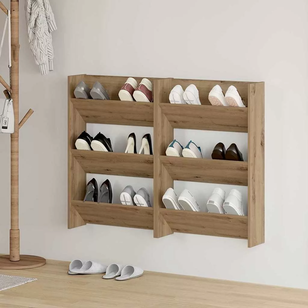 Ez a falra szerelhető cipőszekrény ötvözi a modern stílust a praktikummal, elegáns megoldást nyújt a lábbelik áttekintésére folyosókon vagy bejáratokban. Tiszta vonalaival és minőségi öntött fájával feldobja a belső teret, biztosítva a letisztult megjelenést. Ideális mindennapi használatra, így gondoskodik róla, hogy a folyosód rendezetten és vonzóan nézzen ki. Tartós öntött fa: Kiváló minőségű öntött fából készült, ez a cipőszekrény stabilitást és strapabíróságot nyújt a mindennapi használathoz. Elegáns megjelenése modern belső terekhez illik, miközben megbízható lehetőséget biztosít a különböző méretű és stílusú cipők tárolására. Funkcionális polcok: Masszív polcokkal rendelkezik, amelyek könnyedén elhelyezik a különböző cipőket, legyen szó lapos cipőről vagy csizmáról. Az egyszerű polcrendszer megkönnyíti a tárolást, így minden pár könnyen hozzáférhető marad. Modern falra szerelhető dizájn: A falra akasztható forma értékes padlóterületet takarít meg, így tökéletes kis lakásokhoz. A biztonságos telepítés gondoskodik róla, hogy a modern stílus és a biztonság együtt legyen otthonod rendezett megjelenésével. Sokoldalú kiegészítő: Beltéri folyosókra vagy bejáratokra készült, ez a cipőszekrény rendezetten tartja a helyet, anélkül hogy sok helyet foglalna. Tökéletes választás bármilyen térbe, ahol a helyhatékonyság és a stílus kiemelkedő fontosságú. Karbantartás & összeszerelés: Két embernek és egy csavarhúzónak érdemes nekilátni az összeszerelésnek, az egyszerű utasításokat követve. Ügyelj arra, hogy rendszeresen nedves ruhával tisztítsd, hogy a megjelenése hosszú távon is makulátlan maradjon.