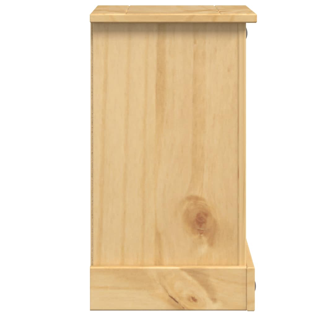Ez a fából készült, stílusos dizájnnal ellátott éjjeliszekrény könnyen illeszkedik hálószobájába vagy nappalijába, és időtlen bájt kölcsönöz a belső térnek. Tömör fenyőfa: A tömör fenyőfa egy gyönyörű természetes anyag. A fenyőfa egyenes erezetű, a csomók pedig jellegzetes, rusztikus megjelenést biztosítanak az anyagnak. A tömör fenyőfából készült éjjeliszekrény strapabíró és masszív.Bőséges tárolóhely: Az éjjeliszekrény 3 kényelmes fiókkal rendelkezik, így kézközelben tarthatja a legfontosabb holmijait.Könnyen karbantartható: Az éjjeliszekrény könnyen tisztítható nedves ruhával, és kevesebb karbantartást igényel.Fém fogantyú: Az ágy melletti szekrény fémből készült gyűrűs fogantyúkkal rendelkezik, amelyek megkönnyítik a fiókok kinyitását és becsukását, miközben tovább növelik szépségét. Figyelem:A felborulás elkerülése érdekében ezt a terméket a mellékelt fali rögzítőeszközzel kell használni.
