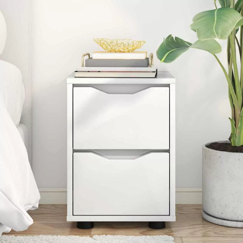Éjjeli asztal Magas Fényű Fehér 30,5 x 30 x 43 cm Faanyag