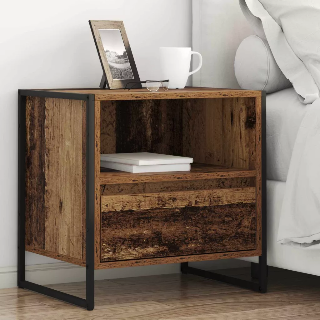 Éjjeli asztal fiókkal 2 pcs Öreg fa 50 x 39,5 x 50 cm Faanyag