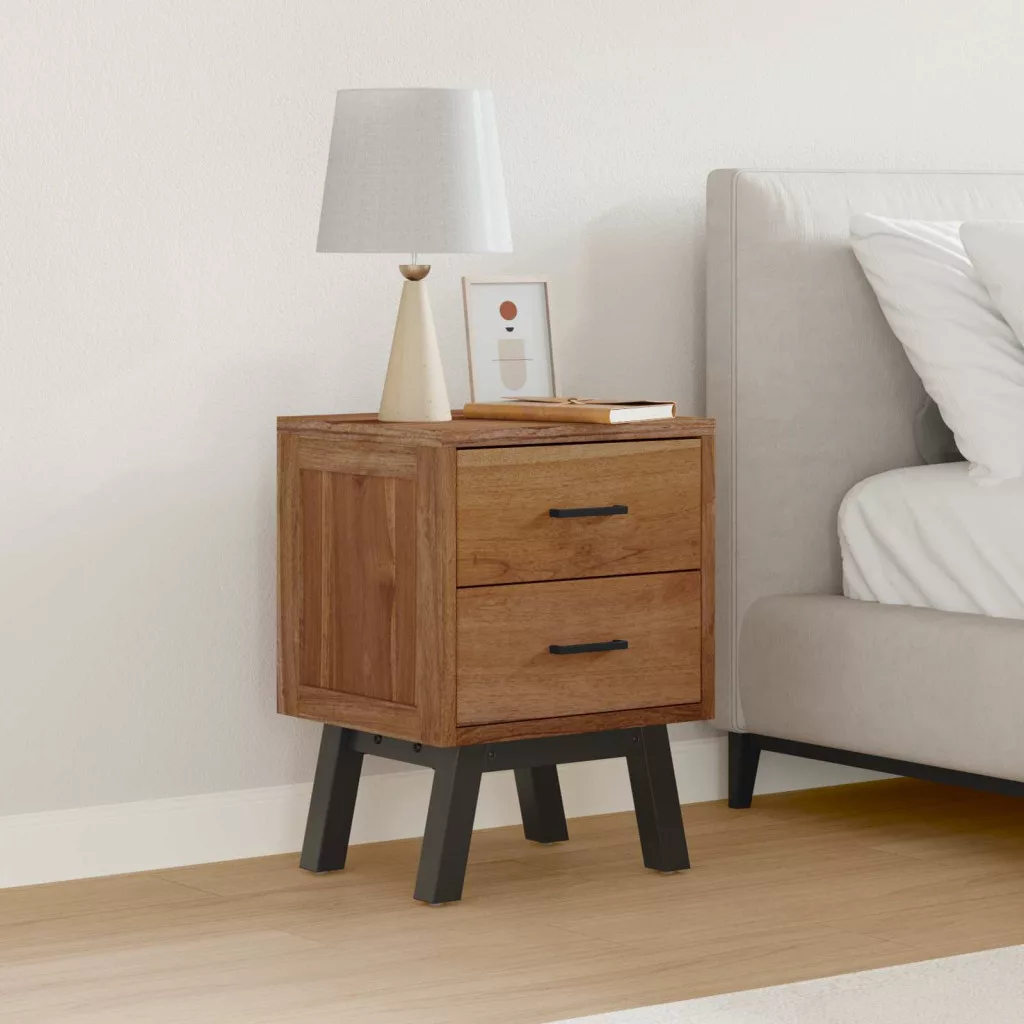 Ez az éjjeli asztal tömör tikfából van, és egy igazi vintage hangulatot hoz el, remekül illik bármilyen hálószobába. A természetes árnyalatok és klasszikus vonások keveréke még vonzóbbá teszi a teret, így tökéletes kiegészítője lehet az ágyadnak, függetlenül attól, hogy lámpáknak, ébresztőórának vagy a kedvenc kiegészítőidnek szánod. A masszív tárgy és az ápolt fa felület melegséget és kézműves érzetet ad a modern és tradicionális stílusú szobákban is, középpontot teremtve, ami gazdagítja a környezetet. Tömör tikfa konstrukció Ez az éjjeli asztal valóban stabil és elegáns, a fenntartható forrásból származó tikfa híres a tartósságáról és az egyedi erezetéről, szóval eredeti báját megőrzi bármilyen belső térben. Bőséges tárolás Két hagyományos fiókja van, amik D-húzókkal vannak ellátva, így könnyen hozzáférhetsz mindenhez, amit csak szeretnél tárolni. Tökéletes könyvekhez, szemüvegekhez vagy elektronikai cuccokhoz, a fiókok kényelmesen illeszkednek ebbe a klasszikus darabba. Minőségi felület Finoman csiszolt, sima felülete van, ami modern hangulatot kölcsönöz neki. A vízbázisú természetes tikfa szín kiemeli a fa gyönyörű textúráját, a jól megtervezett dizájn pedig megkönnyíti a karbantartást. Tartós fém elemek Az erős fém lábak és fogantyúk remekül támogatják a bútort, és napi használatra készültek. Fekete színük kiemeli az asztal vintage dizájnját, míg a kontrasztos megjelenés mindenféle ízlésnek és stílusnak megfelel. Minimalizált karbantartás Könnyen megőrizhető az éjjeli asztal szépsége egy egyszerű karbantartási útmutatóval. Kerüld a durva tisztítószereket a felület védelme érdekében, így az asztal évek múlva is a szobád középpontjában maradhat.