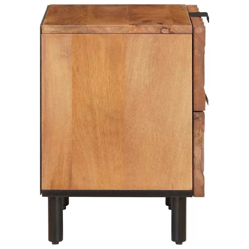 Ez az éjjeli szekrény apraktikus tárolást és a stílust ötvözi, remek kiegészítője bármilyen hálószobának. Gondos tervezésével tömör mangófát használtak, ami melegséget sugároz és remek megjelenést kölcsönöz neki, miközben tárolási megoldásokat is nyújt. Téglalap formája miatt könnyen illik a különböző ágystílusok mellé, helyet biztosít a lámpáknak, könyveknek vagy a személyes tárgyaidnak. A sima hátsó része miatt minden oldalról szép, így remekül illik a hálószobádba. Anyagok: Főként tömör mangófából készült, ez az éjjeli szekrény nagyon erős, így hosszú távon is megbízható. A mangófában lévő természetes rostok különleges bájt adnak neki, és remekül illik bármilyen szobához. Ez az anyag nemcsak szép, hanem tartós is, így tökéletes mindennapi használatra. Az összetevők: Az éjjeli szekrény két tágas fiókjával bőséges tárolást biztosít a napi alapvető dolgoknak, könyveknek és egyéb apróságoknak. Minden fiók tömör mangóból készült, ami illik a szekrény stílusához, és biztosítja a zökkenőmentes nyitást. Ezzel a szekrénnyel könnyen elérheted a tárolt dolgaidat, ami növeli a funkcionalitását. Jellemzők / Funkció / Design: A szekrény nagy tárolókapacitása kiemelkedő, rengeteg helyet biztosít az otthonod rendben tartásához. A polcai ideálisak apró dolgok, mint olvasószemüveg vagy kütyük biztos tárolására. Ez az éjjeli szekrény elegáns dizájnja ötvözi a funkciót és a stílust, így idomul a különböző dekorációs témákhoz, a moderntól a rusztikusokig. Ajánlott használat: Tökéletesen az ágyak mellé lett tervezve, ez a szekrény jól illeszkedik a rendhez. Egyedülálló darabként vagy megfelelő ágykeret kiegészítéseként is használhatod. Kompakt mérete, 40 x 33,5 x 46 cm, ideális a kisebb helyiségekbe, anélkül, hogy a tárolókapacitást csökkentené, lehetővé téve ezzel az éjjeli dolgok könnyű elérését. Ápolás és karbantartás: Eredeti szépségének megőrzéséhez rendszeresen töröld le száraz ruhával, hogy eltávolítsd a port. Kerüld a durva vegyszereket, hogy megóvd a fa természetes fényét. Hosszú távú használatra használd száraz helyen, így ez a szekrény éveken át a családtagod marad.