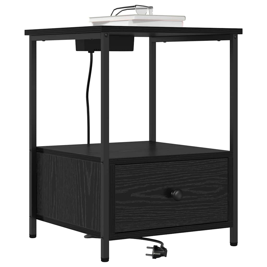 Éjjeliszekrény Töltőállomással fiókkal Musta tammi Faanyag