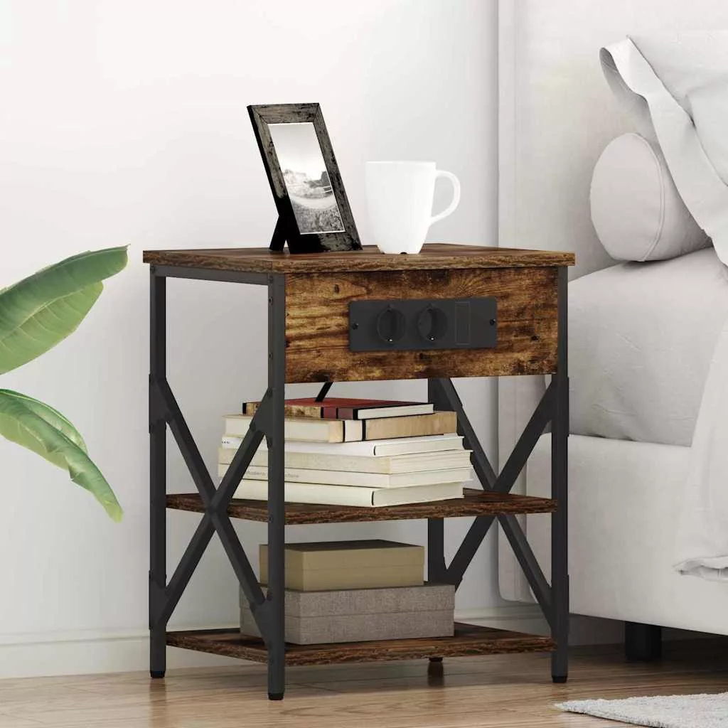Éjjeliszekrény Töltőállomással polcokkal Füstölt tölgy Faanyag