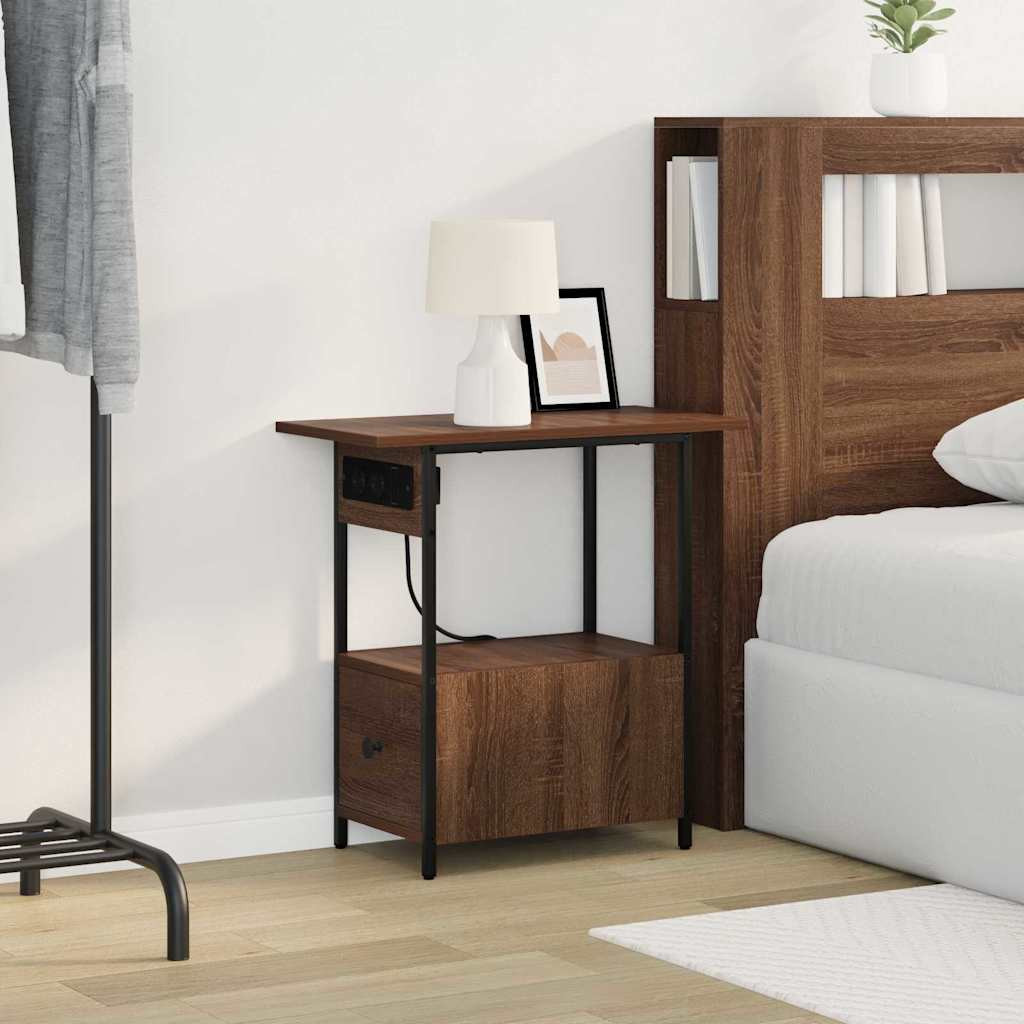 Éjjeliszekrény fiókkal barna tölgy 60 x 30 x 61 cm Faanyag