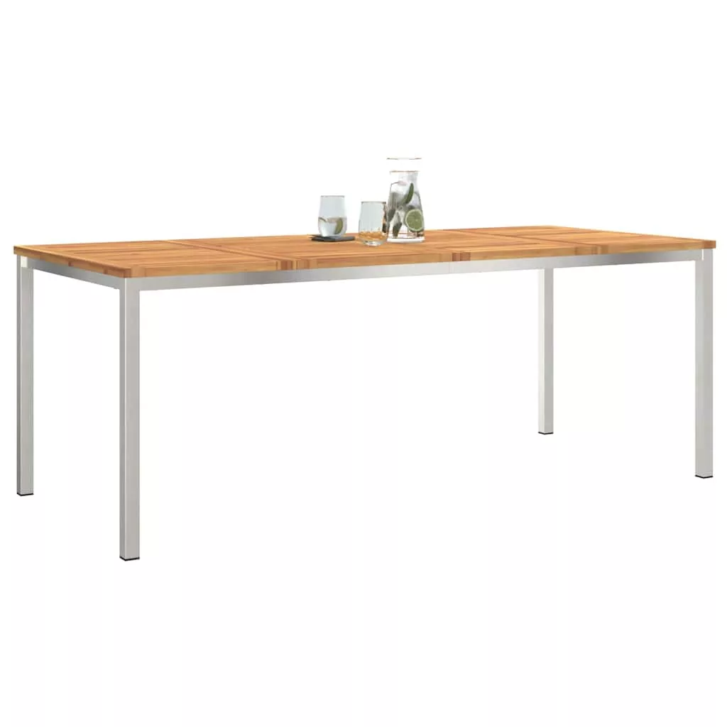 Ez a Modern étkezőasztal a kültéri használatra lett kitalálva, így tökéletesen illik a kertedbe vagy teraszodra. Elegáns vonalvezetéssel és letisztult stílussal bővíti a kültéri életteredet. Ergonomikus megoldás, amivel az étkezések vagy a baráti összejövetelek sokkal élvezetesebbé válnak. A modern kinézete variálható, bármilyen kültéri dizájnnal remekül harmonizál. Prémium anyagokból készült Ez az asztal egy szuper rozsdamentes acél vázzal rendelkezik, ami robusztus és szép is. A keményfa elemek pedig nemcsak tartósságot, hanem természetes érintést is adnak neki, ami nagyon jól mutat a kerti környezetben. Kényelem és funkcionalitás Ezt az asztalt modern szemlélettel tervezték, ahol a letisztult formák nem csökkentik a funkcionalitását. A minimalista dizájn kiemeli a természetes anyagokat, így minden étkezés sokkal kellemesebb lesz a kertben vagy a teraszon. Tartós kivitel A keményfa és a rozsdamentes acél kombinációjának köszönhetően, az asztal hosszú távú használatra lett optimalizálva, így biztos lehetsz benne, hogy megőrzi a minőségét és a kinézetét is. Ez a kombináció magabiztos jelenlétet ad, mindeközben minimális karbantartást igényel. Könnyű összeszerelés és karbantartás Az asztal összeszerelése közel sem nehéz, csak egy csavarhúzóra lesz szükséged, amit akár egyedül is megoldhatsz. A tisztítása is szuper egyszerű, mindössze egy nedves rongyra lesz szükséged, hogy mindig szép és elegáns maradjon a kültéri teredben. Flexibilis használat Akár kerti bulit szervezel, akár csak egy lazább étkezést tervezel kint, ez az étkezőasztal minden igénynek megfelel. Sok lehetőséget ad a különböző üléselrendezésekhez, így biztosítva, hogy mindig jól tudjatok beszélgetni és interakcióba lépni a találkozókon.