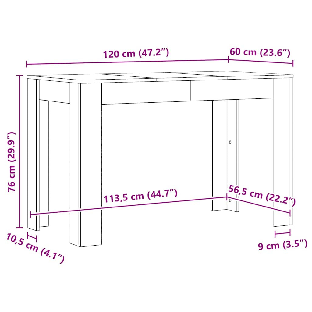 Étkezőasztal kézműves tölgy 120x60x76 cm műszaki fa
