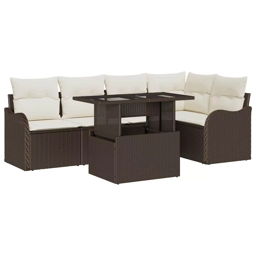 vidaXL Étkezőgarnitúra párnával 6 pcs Barna Poli rattan