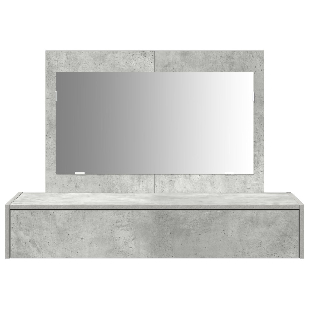 Ez a fali akasztós sminkasztal modern ipari hangulatot és praktikus funkciókat kínál, így minden hálószobába vagy ápolási területre illik. A sima beton szürke burkolat és a letisztult vonalak igazán stílusos középponttá varázsolják, emellett rengeteg praktikumot adnak a mindennapi ápolásodhoz.