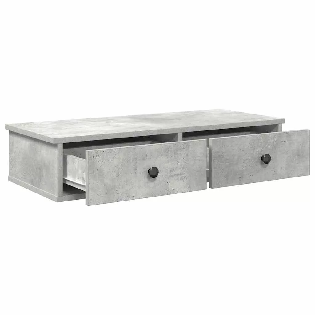 Falipolc fiókokkal betonszürke 80x31x17 cm műszaki fa