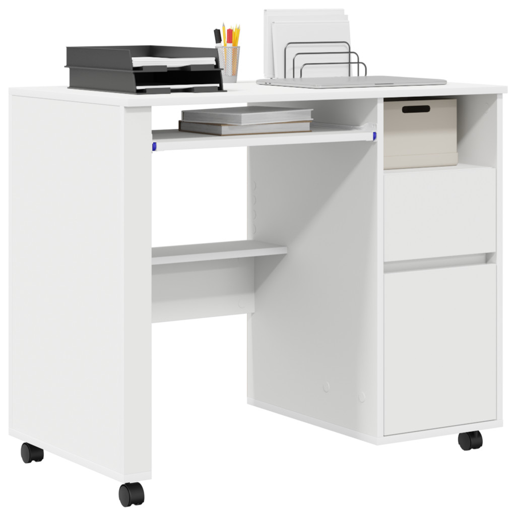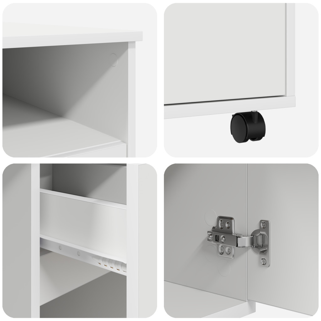 - Mozgatható kerekek: Négy kerékkel az íróasztal könnyen mozgatható különböző helyekre, lehetővé téve a rugalmas használatot a munkaterület változó igényei mellett. Ez a funkció egyszerűsíti a takarítást vagy a hely átrendezését.