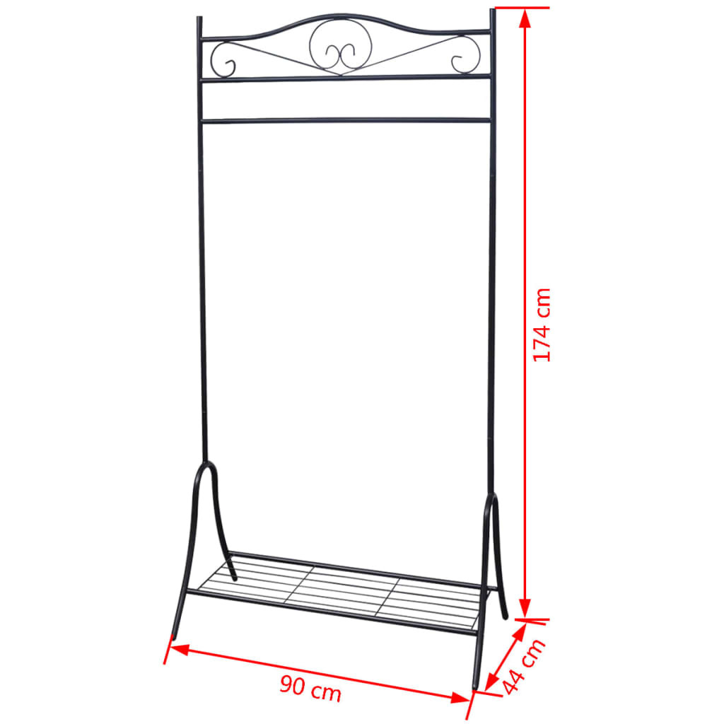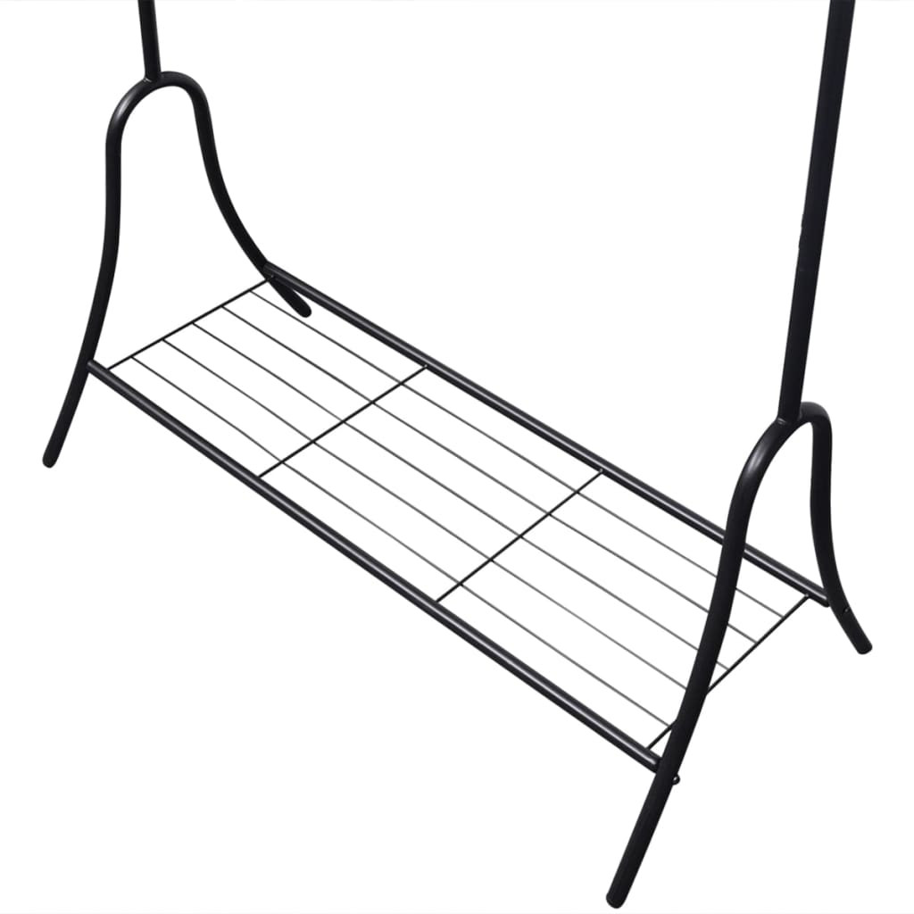 Ezen a masszív ruhatartón gyorsan és kényelmesen tárolhatja az öltözékét. Bárhol elhelyezheti otthonában és ideális helyet biztosít ruhái rendezett és gyűrődésmentes tárolására. A felső akasztó rúdjával és az alsó polcával extra helyet biztosít öltönyének, ruháinak, cipőinek és miegymásnak. Könnyed hozzáférést nyújt a ruháihoz és kellékeihez. Elegáns díszítő részletei úgy széppé mint praktikussá is teszik. Erős acél felépítése van, melynek köszönhetően tartós, mégis súlya könnyű. Az alsó polc használható cipők vagy kosarak tárolására. Rendkívül könnyen összeszerelhető.