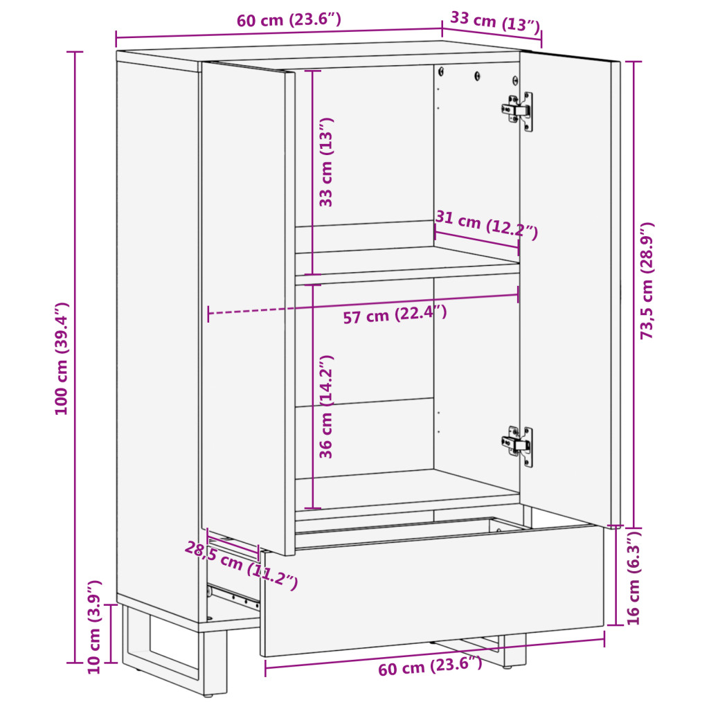 - A matt fekete fémváz és fogantyúk jól illenek a természetes fához, így összességében egy jól megtervezett megjelenést nyújtanak.