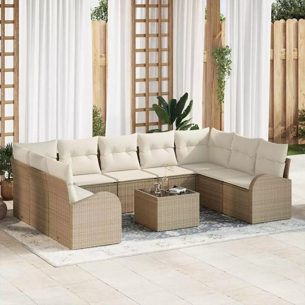 Kanapé Szett párnával 10 pcs Beige és Fehér polirattan