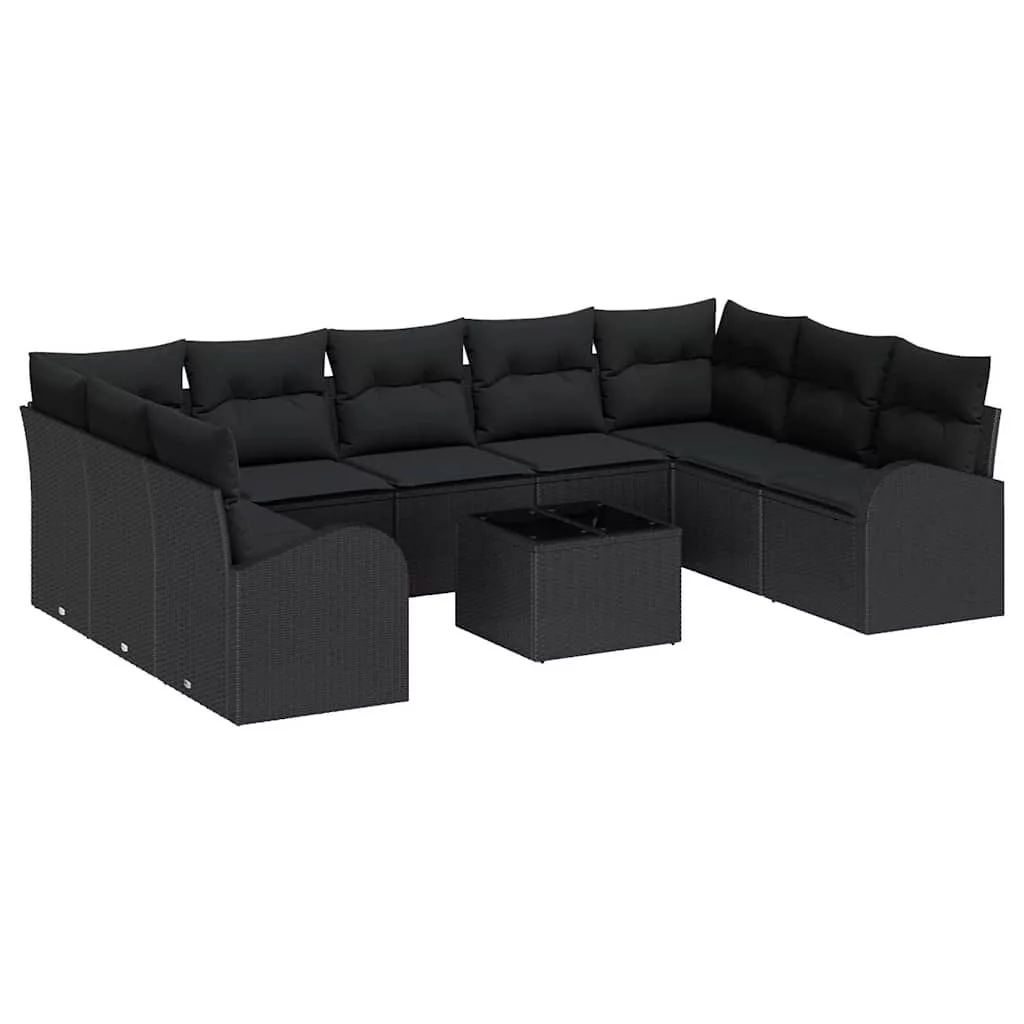 Kanapé Szett párnával tárolóval 10 pcs Fekete polirattan