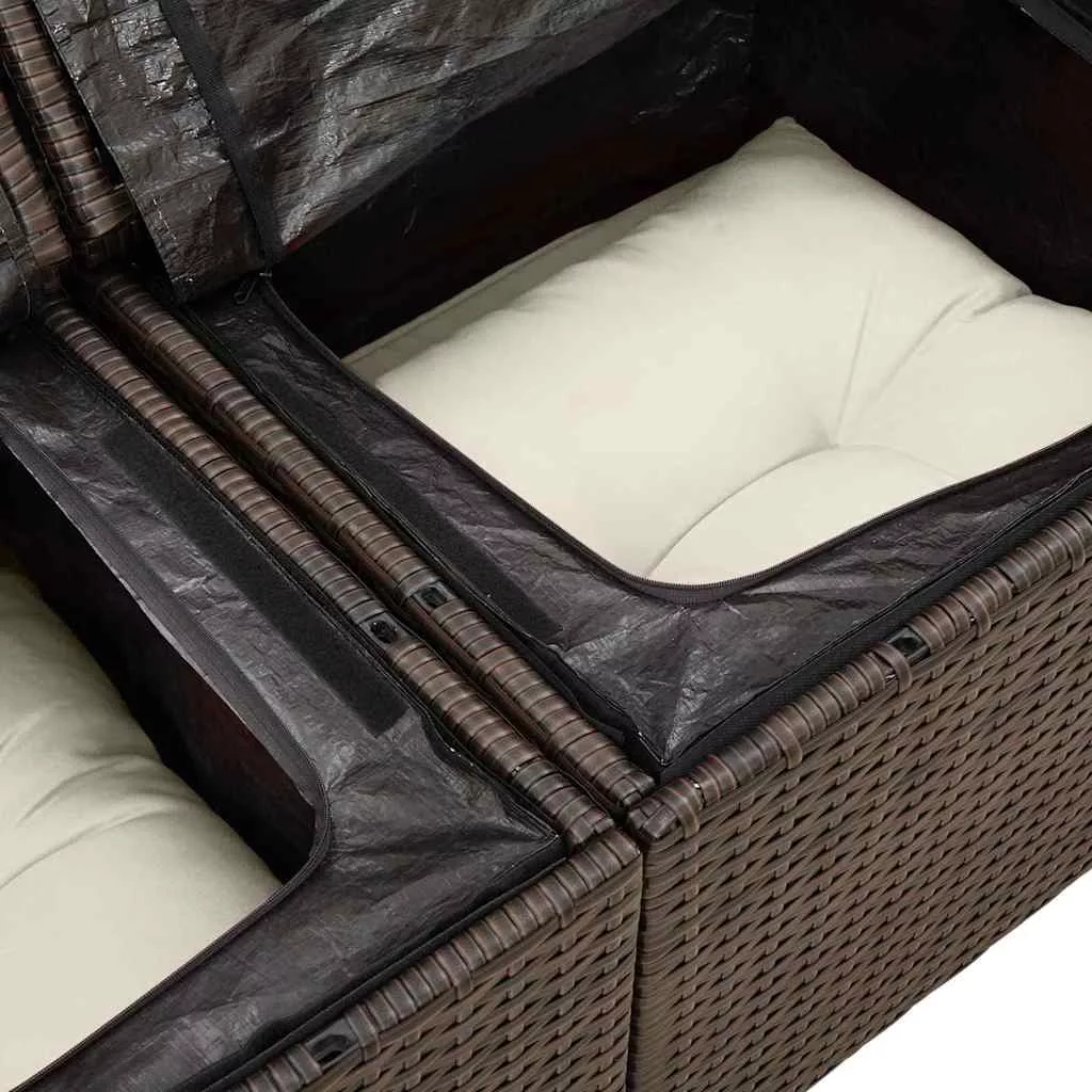 Kanapé Szett párnával tárolóval 6 pcs Barna és fehér polirattan