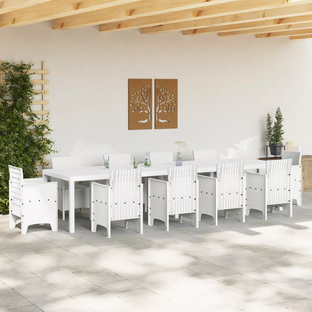 - Modern Dizájn: Szép vonalakkal és világos fehér színével ez az asztal klasszikus középpont a kültéri teredben, sokféle stílushoz passzol.
