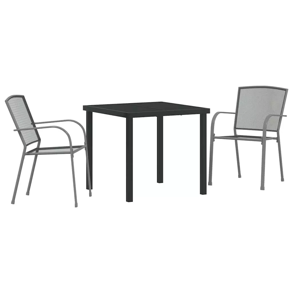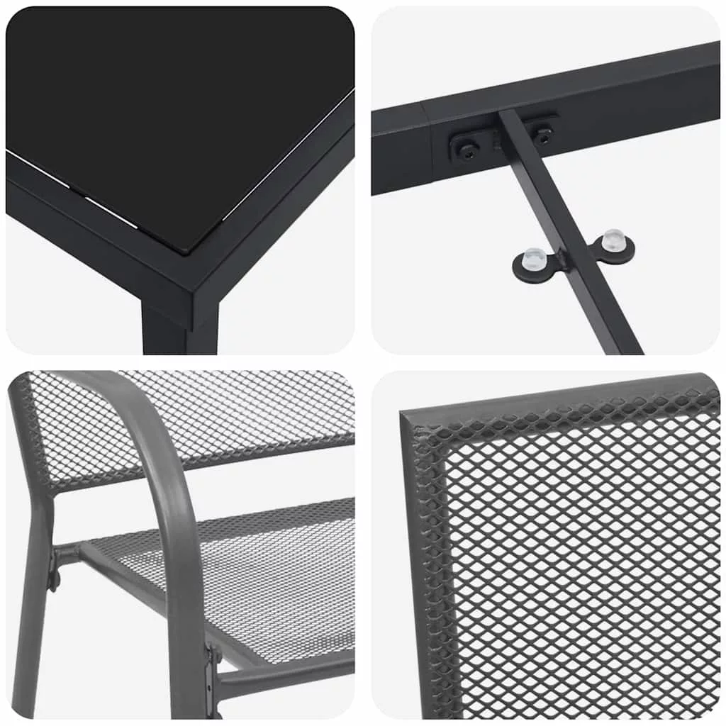 Ez a Kortárs Kerti Étkezőszett egy stílusos, funkcionális kiegészítő a kültéri életteredhez. Letisztult, téglalap alakú formája és figyelemfelkeltő antracit színe a modern egyszerűség megtestesítője. Aki napfényes tavaszi és nyári napokra keres középpontot, ami baráti beszélgetésekhez vagy étkezésekhez ideális, az épp a megfelelőt találta benne. Tiszta vonalai és minimalista dizájnja garantálja, hogy bármely kert vagy terasz hangulatát meghatározza. Anyagösszetétel: Ez az étkezőszett porszórt acélból készült, ami híres a tartósságáról és az extrém időjárás elviseléséről. Az edzett üveg asztallap eleganciát kölcsönöz az étkezési élményhez, miközben könnyen tisztán tartható. Funkcionális tervezési elemek: A háttámlás dizájn mutatós, a nyitott térben is jól mutat. Fekete porszórt acél lábai stabilitást adnak, ezáltal támogatva bármilyen méretű összejövetelt. Minden részlet kellemes légkört teremt, ami ideális a vidám délutánokhoz vagy élénk kültéri étkezésekhez. Tökéletes kültéri használatra: Kertekhez és teraszokhoz észlelték, így ideális reggeli kávézáshoz és pezsgő családi vacsorákhoz. Stílusos tervezése kompromisszummentes, sokoldalúságot ígér, emlékezetes pillanatokat teremtve a szabadban. Gyors száradási funkció: Az eső után is gyorsan szárad, minimalizálva a nedvesség felhalmozódását. Ez megkönnyíti a karbantartást és biztosítja a tartósságot szezonról szezonra. Átfogó gondozási útmutató: Egyszerű karbantartási ajánlásokkal, mint például takarás használaton kívül, megőrzi kifogástalan állapotát, ezzel garantálva, hogy megbízható elem marad. A könnyű gondozás több időt biztosít az élvezetre, anélkül hogy folyamatos karbantartás terhelné.