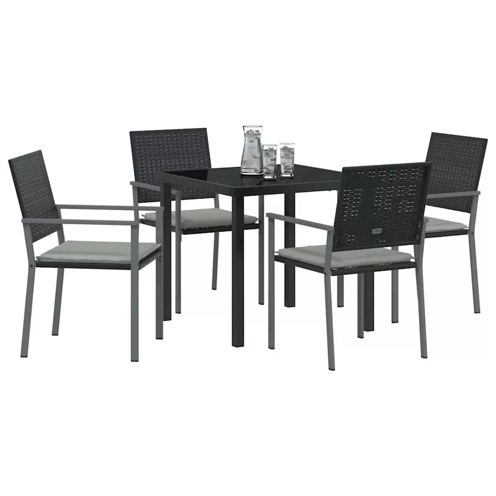 Ez a stílusos Kerti Étkező Szett a modern dizájnt vegyíti a tartós anyagokkal, kényelmes hangulatot teremt a kültéri étkezéshez. Kortárs otthonoknak készült, letisztult vonalakat és praktikus eleganciát mutat, tökéletes rendezvények lebonyolítására vagy a kertben, teraszon való lazulásra. Megdöbbentően néz ki, így vizuális vonzereje mellett kényelmes helyet biztosít a szabadban való étkezésekhez vagy hagyományos találkozókhoz. Az évszakok változásainak is ellenáll, zökkenőmentesen illeszkedik a különböző kerti stílusokhoz. Anyagok: A Kerti Étkező Szett PE Rattanból és porszórt acélból készült, ezért jól bírja a kinti időjárást. A rattan szellőzik és kényelmet biztosít, az acél pedig tartósságot ad, így ez a szett megszínesíti az összes kültéri programot. Befoglalott elemek: Minden szett tartalmaz egy robusztus asztalt és székeket, mindegyik karfás, porszórt acélból készült. Az antracit színű karfa és a háttámla stílusos megjelenést ad, modern kültéri terekhez optimalizálva. Jellemzők / Funkció / Design: A szett a formát és funkciót ügyesen ötvözi, modern egyszerűségével kiemelkedik. UV-ellenálló, így véd a nap tűző fényétől, míg a porszórt felület és anyagok hosszú távú kültéri használatra lettek tervezve. Ajánlott használat: Kerthez és teraszhoz ideálisan tervezve, ez az étkező szett tökéletes kültéri étkezésekhez, lehet szó egy nyugodt reggeliről a tavaszi napfényben vagy egy nyári buliról. Kifejezetten kültéri használatra készült, hogy bármilyen kertbe illeszkedjen. Karbantartás: Hogy megőrizd, ajánlott huzatot használni, ha éppen nem használod, és puha, száraz ruhával törölni. Az anyagok gyorsan száradnak, így a karbantartás egyszerű és zökkenőmentes, biztosítva, hogy mindig remek állapotban maradjon.