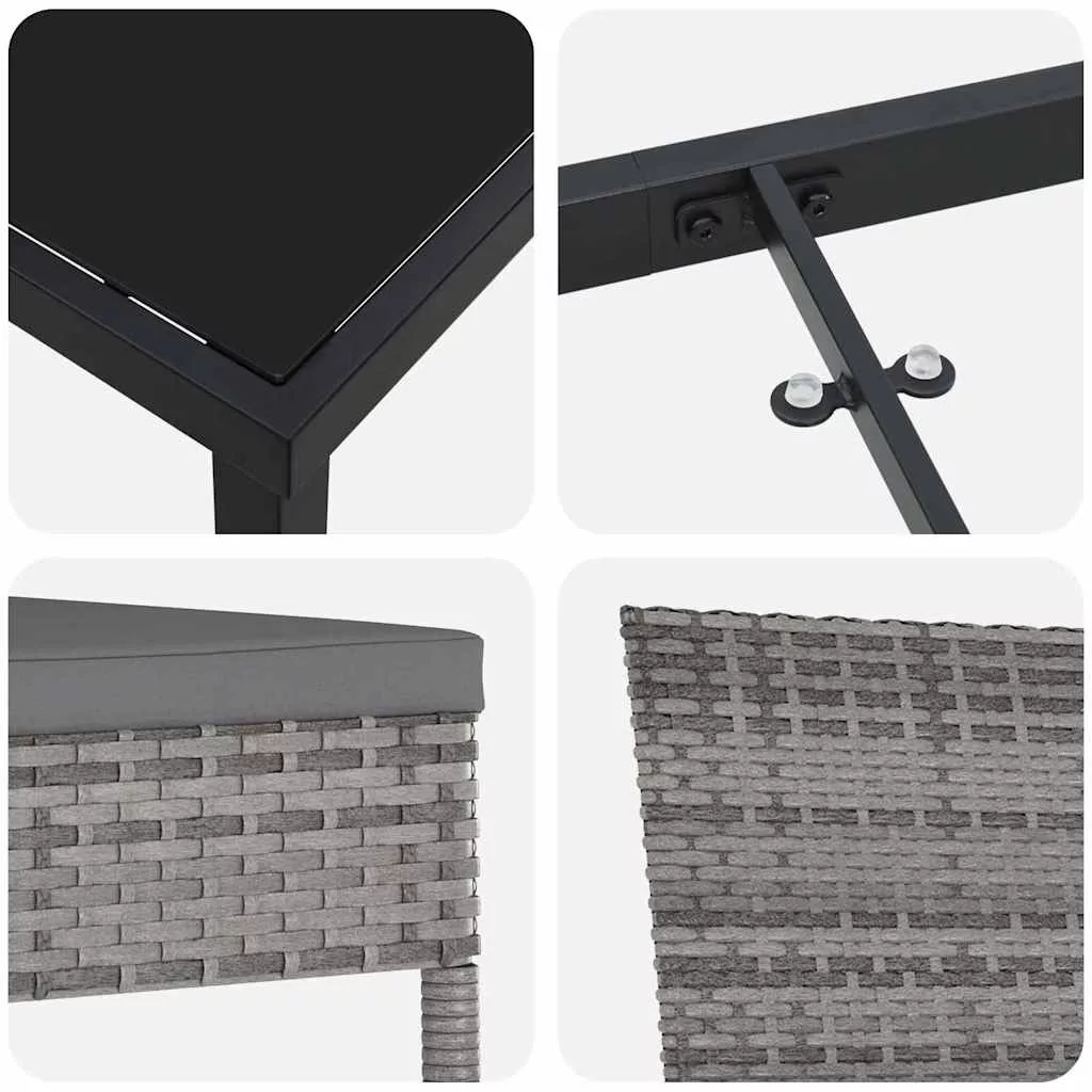 Ez a Kortárs Kerti Étkezőgarnitúra modern eleganciát visz a kültéri tereidbe. A letisztult vonalak és minimalista dizájn feldobja bármely kert vagy terasz kinézetét. Olyan kényelmes, hogy ideális bruncshoz a napfényben vagy romantikus vacsorákhoz, minden alkalmat feldob a stílusával. Minőségi anyagok: A garnitúra prémium polirattanból készült, ami hosszú élettartamot és gyorsan száradást biztosít. Az anyag védi a bútorokat a külső hatásoktól. Tartós alkatrészek: A keret porszórt acélból van, tehát stabil és tartós, megőrzi a kinézetét még zord időben is. Modern jellemzők: Esztétikus, cipzáros párnákat kínál, amiket könnyű karbantartani. Tervezett sokoldalúság: Tökéletes kertekben és teraszokon, ahol különböző eseményekhez tudod használni, legyen szó családi vacsorákról vagy bulikról. Alapvető gondozás: Használj védőhuzatot, amikor nem használod, hogy hosszabb ideig szép maradjon.