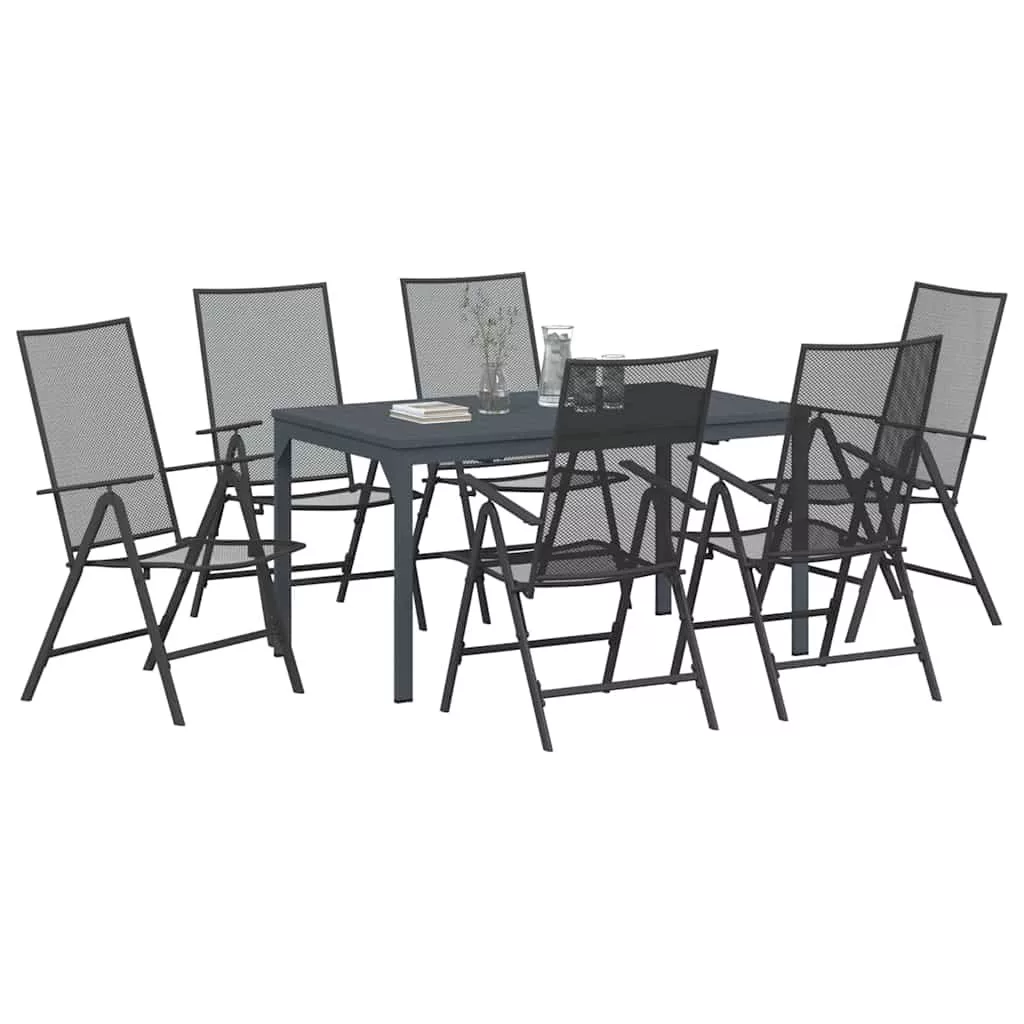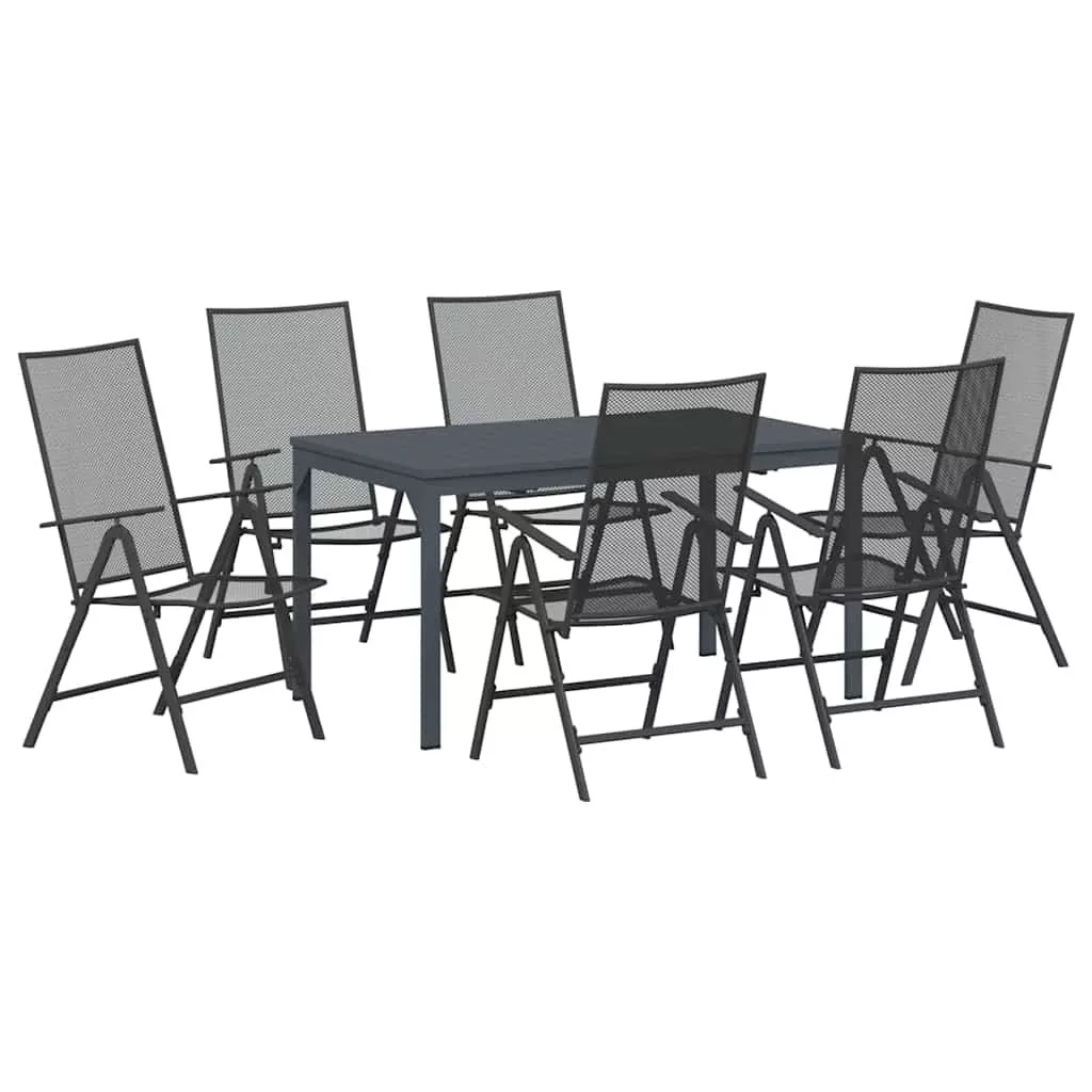 Ez a Modern Kerti Étkezőszett az outdoor étkezés élményét varázsolja új szintre. Stílusos, antracit színével és letisztult formáival tökéletesen illeszkedik kortárs kültéri terekhez, miközben meghitt légkört teremt a kerti összejövetelekhez. A porszórt acél keret diszkrét eleganciát sugároz, és stabil támaszt nyújt az összes étkezéshez. A sok vendéget is kényelmesen elhelyezhető, így ez a szett ideális a családi vacsorákhoz és a szabadtéri eseményekhez, stílust és funkcionalitást egyesítve a különböző környezetekhez. Porszórt acél konstrukció A szett tartós, porszórt acél keretével éri el a hosszú élettartamot és az időjárásnak való ellenállást. Az antracit bevonat modern hatást ad, és a kopástól is megóvja, így szezonról szezonra remekül mutat. Kihúzható asztallap Manunális kiterjesztéssel rendelkezik, több helyet biztosít a nagyobb összejövetelekhez. Sokoldalú funkciója lehetővé teszi, hogy különböző eseményekhez méretben alkalmazkodjon, így akár intimebb vacsorákra, akár családi ünnepekre is használhatod. Kényelmes karfák Ergonomikusan tervezett karfái növelik az ülési kényelmet, így az étkezések mindig pihentetőek. A karfák stílust is adnak, remekül illeszkednek a modern megjelenéshez. Levehető párnák Cipzárral rögzített, könnyen eltávolítható párnákkal jön, így takarításuk egyszerű. Frissítsd fel a szett megjelenését minimális erőfeszítéssel! Időjárásálló ápolás Különleges anyaga biztosítja, hogy bírja a kültéri körülményeket, de ha használaton kívül védőhuzatot használsz, még tovább megőrizheted a szett szépségét az évek során.