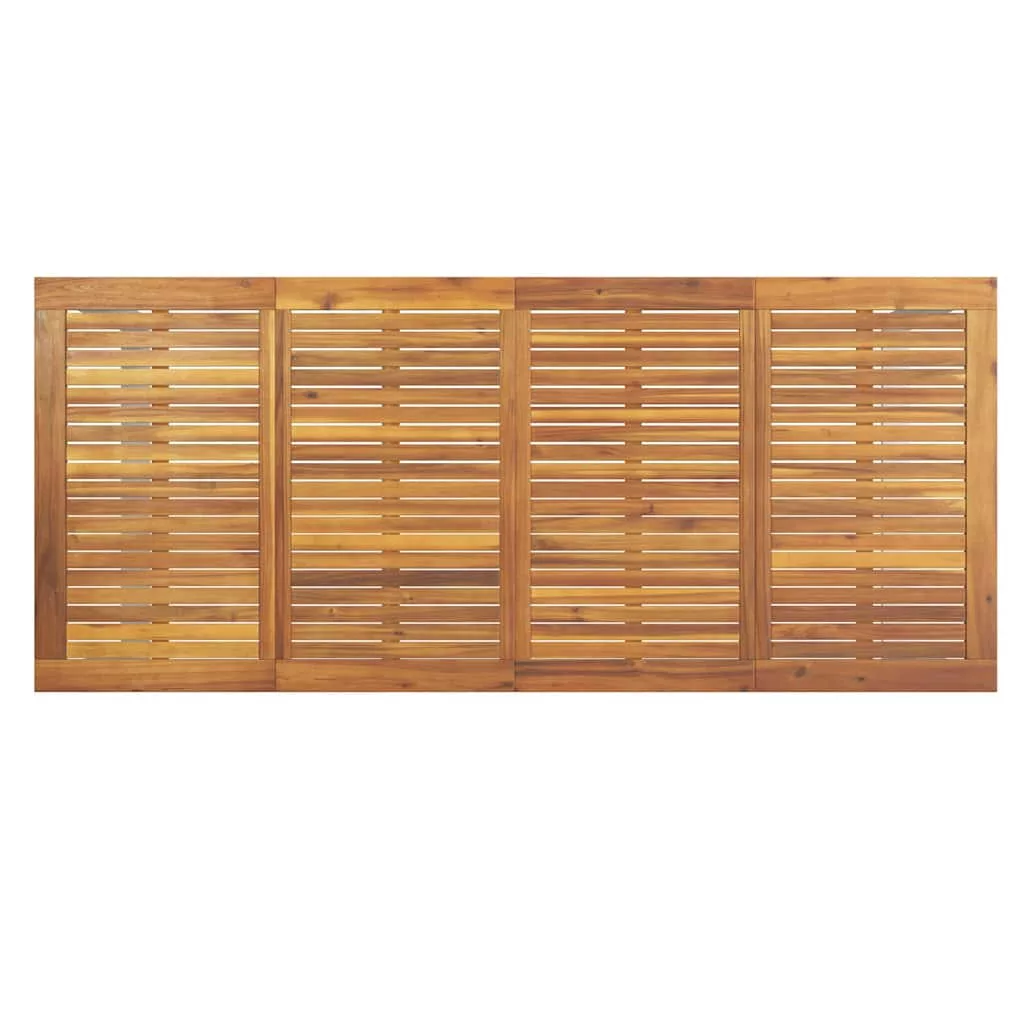 Ez a Kerti Étkező Szett a kültéri bulik középpontja, modern és letisztult dizájnjával. Téglalap alakja biztosít rengeteg helyet barátok és család számára, és nagyszerű hangulatot teremt az elegáns étkezésekhez. Masszív akácfa: Az étkező szett tömör akácfából készült, természetes érintést adva a kültéri megjelenésnek. Ez az anyag hosszú élettartamot és stabilitást biztosít, bírja az időjárást, de mégis vonzó a megjelenése, így illik bármilyen kültéri helyszínhez. Robosztus acélkeret: Az acélkeret erős támasz, nagy súlyt is elbír. Ez lehetővé teszi a mindennapi használatot, akár teliszatyrokkal is. Mutatós háttér: A háttér dizájnja modern, ami jól illeszkedik a kert teréhez, fokozva az étkezési élményt. Könnyű karbantartás: Ennek a szettnek az ápolása pofonegyszerű. Használj száraz ruhát az akácfa és acél keretek tisztításához, hogy sokáig szép maradjon. Stílusos karfák: A tömör akácfából készült karfák barna árnyalatúak, ami melegséget és eleganciát ad az ülőhelyeknek. Ergonomikusak, így még a hosszú étkezés is kényelmes.