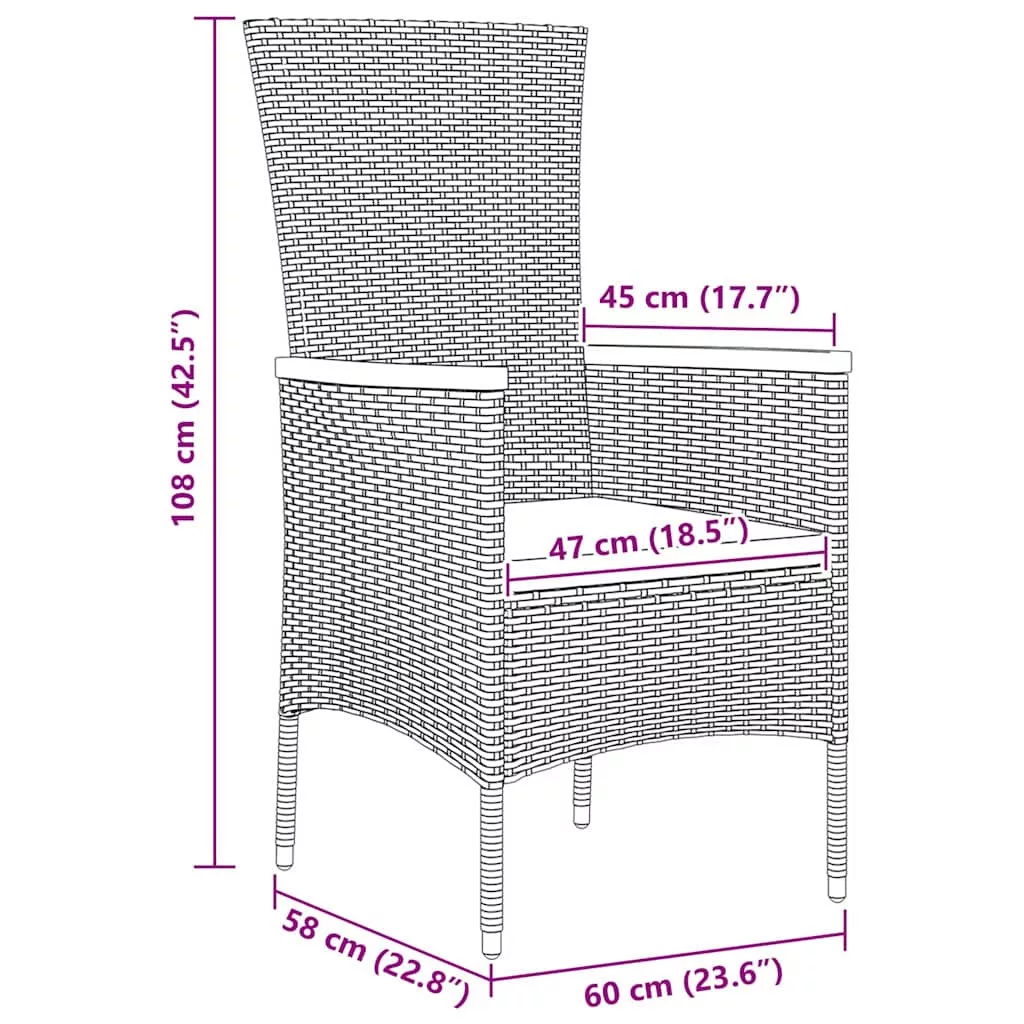 Kert étkező szett párnával 5 pcs Szürke Poli rattan