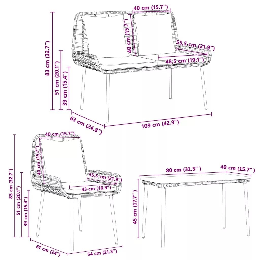 Ez a modern bútor szett az, amire szükséged van a kertedbe vagy teraszodra, ötvözve a funkcionalitást a letisztult, minimális stílussal. Tiszta vonalak és egy asztal, egy pad, meg két szék alkotja, tökéletes a szabadtéri élvezetekhez és szórakozáshoz. A polirattan és acél anyagok nemcsak jól néznek ki, de elég erősek is ahhoz, hogy bírják az időjárás viszontagságait, ideális összejövetelekhez, vacsorákhoz, vagy csak a kinti lazításhoz. Anyagok: Ez a bútorszett tartós anyagokból készült, amik kifejezetten a szabadban való használatra lettek tervezve. A polirattan szerkezetet egy masszív acélváz támasztja alá, ami tartósságot és elegáns megjelenést kölcsönöz. A kényelmes poliészter párnák révén tartós kényelmet és stílust kínál, remek kiegészítője bármilyen kültéri térnek. Belső elemek: A szett egy edzett üveg táblával rendelkező asztalt, egy padot és két széket tartalmaz. Mindegyik szék polirattan karfákkal rendelkezik, tökéletes a kényelmes pihenéshez. Ezek a komponensek a különböző igényekhez való alkalmazkodás érdekében lettek tervezve, így egy stílusos és funkcionális kültéri teret hoznak létre. Jellemzők / Funkció / Kialakítás: UV-álló anyagok révén minden színét és formáját megőrzi még a nap alatt is. A modern dizájn eleganciát ötvöz a gyakorlati felhasználással, így ez a szett remek választás stílusos kültéri környezetekhez. Ajánlott felhasználási területek: Tökéletes kertekhez és teraszokhoz, ez a szett bármilyen kültéri térbe illeszkedik. Ideális vendégek fogadására vagy önálló pihenésre. Akár reggeli chill helyre, akár esti bulizós helyszínre vágysz, ez megadja neked. Takarítás és karbantartás: Tartsd a szettet csúcsformában egy gyors törléssel egy nedves ruhával néha. A párnahuzatokat tartsd bent, amikor nem használod őket, hogy megőrizzék a szépségüket. Ez az egyszerű karbantartás segít hosszú ideig frissen tartani a szettet, és meghosszabbítja a termék élettartamát.