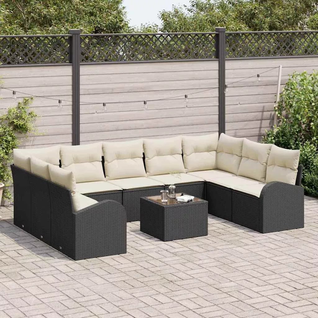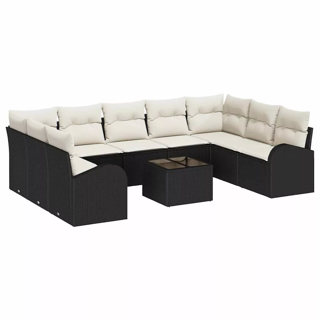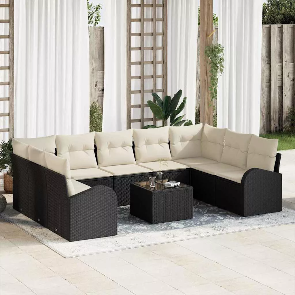 Kerti Kanapé Szett 10 pcs Fekete Poli rattan
