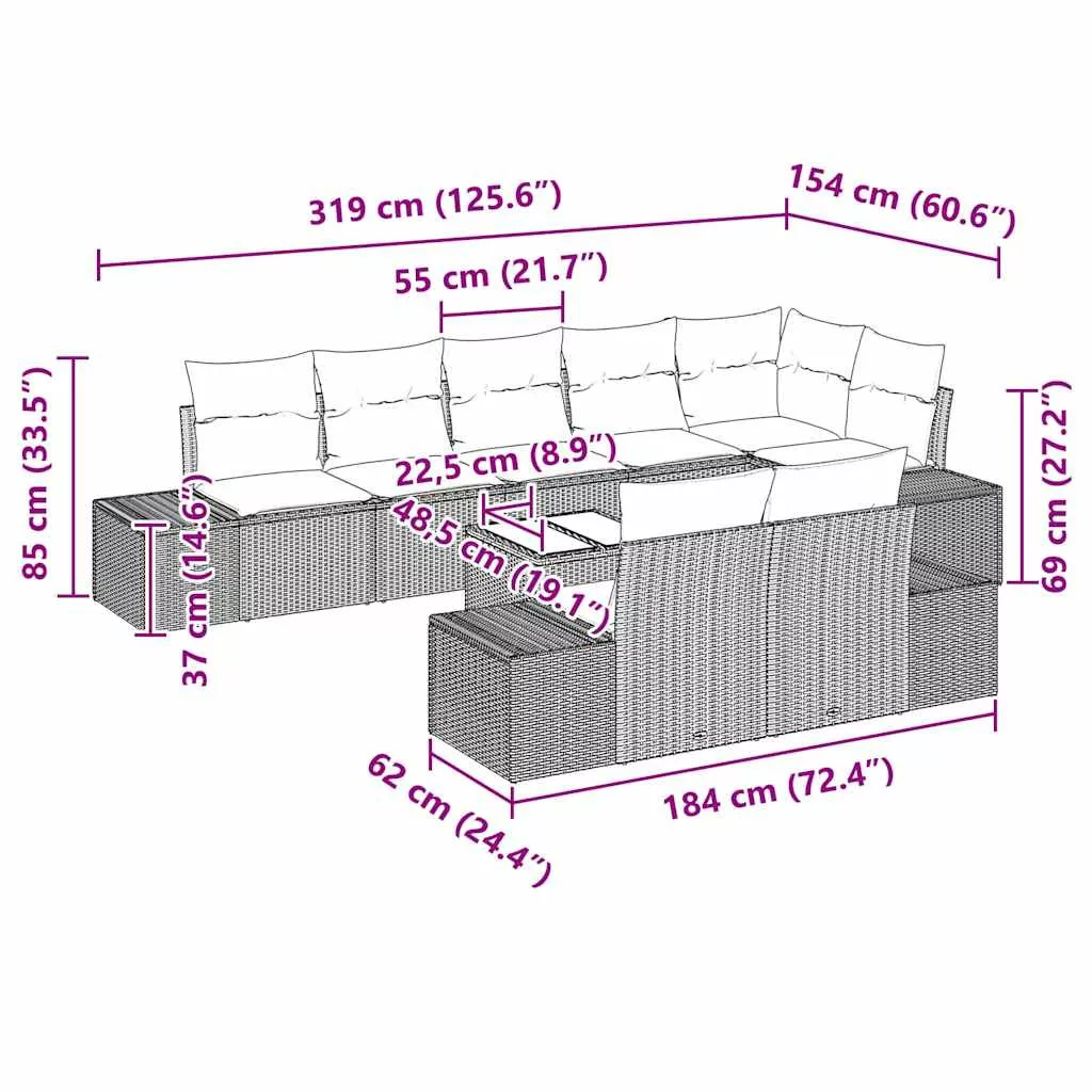 Kerti Kanapé Szett 9 pcs Fekete és krémszínű Poli rattan