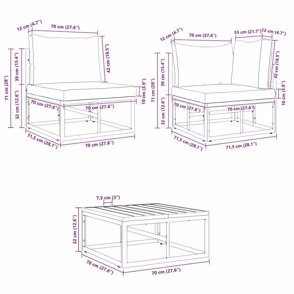 Ez a Kerti Kanapé Készlet a funkció és a modern elegancia tökéletes ötvözete, azok számára készült, akik élvezik a kültéri életet. Egyszerű és tiszta vonalú formájával nemcsak a szépséget, hanem a kényelmet is fokozza a kültéri térben. Akár vendégeket szórakoztatsz, akár a családdal lazítasz, ennek a készletnek a moduláris elemei lehetővé teszik, hogy az alkalomhoz szabott egyedi konfigurációt állíts be. Az antracit színű párnák csinos kontrasztot adnak a masszív fekete alumínium kerethez, harmonikusan illeszkedve a kert és terasz környezetébe. Tartós Alumínium Váz: Magas minőségű alumíniumból készült, ez a kanapé készlet úgy van tervezve, hogy ellenálljon a kültéri körülmények szeszélyeinek. Porszórt bevonattal a tartósság érdekében, a váz rozsdamentes és könnyű, lehetővé téve a könnyű mozgathatóságot a különböző kerthelyiségek között. Antracit Poliészter Párnák: A párnák, poliészterrel kárpitozva, diszkrét eleganciával bírnak az antracit színben, puha és hívogató ülési élményt kínálva. Az anyag úgy lett megtervezve, hogy ellenálljon a kültéri használatnak, megőrizve vonzó megjelenését a változó időjárás mellett. Levehető Párnák: Minden ülőpárna cipzárral van ellátva, amely megkönnyíti a zökkenőmentes eltávolítást és karbantartást. Ez a figyelmes részlet biztosítja, hogy az ülőhelyed frissen és tisztán tartása egyszerűen kezelhető legyen. Kültéri Párna Kialakítás: Kifejezetten kültéri alkalmazásra készült, a párnák időjárásálló profillal rendelkeznek, képesek ellenállni a természeti elemeknek, miközben nagyszerű ülési kényelmet biztosítanak. Moduláris Rugalmasság: Testreszabásra készült, a moduláris elemek lehetővé teszik a sokféle elrendezést, könnyen alkalmazkodva a különböző számokhoz vagy térbeli konfigurációkhoz. Tökéletesen alkalmas a változó igényeknek való megfelelésre, a nagy összejövetelektől az intimebb beállításokig.
