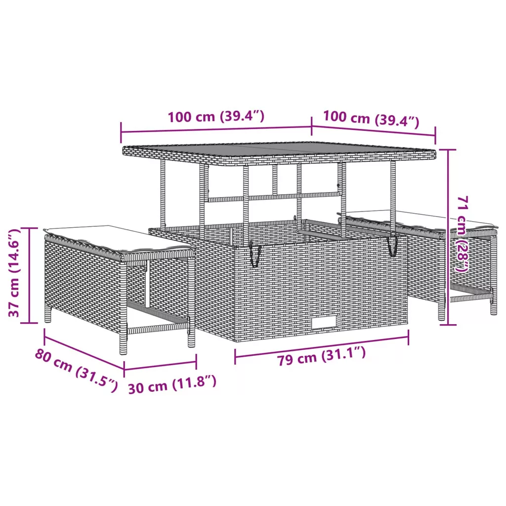 • 1 x asztal: 80 x 80 x 71 cm (HosszúságxSzélességxMagasság)