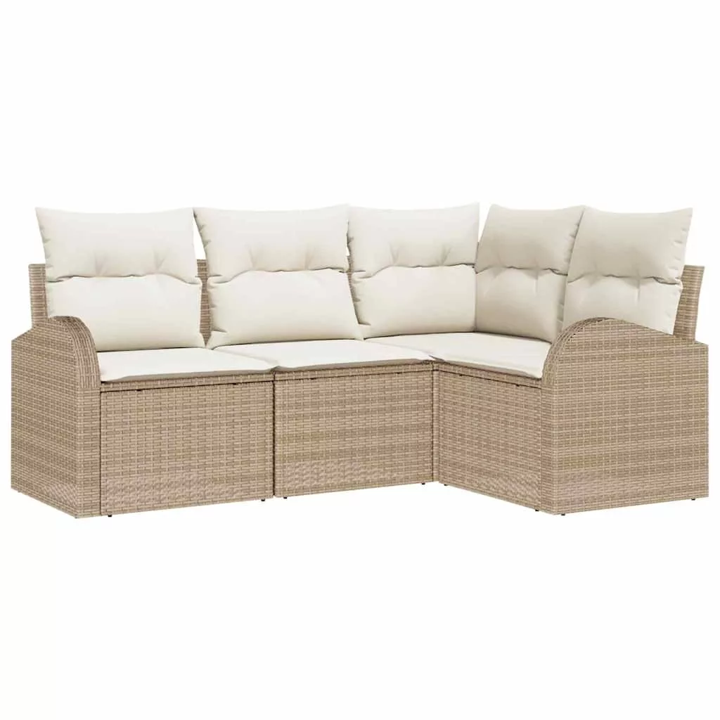 Kerti Kanapé Szett párnával 4 pcs Beige és Fehér polirattan