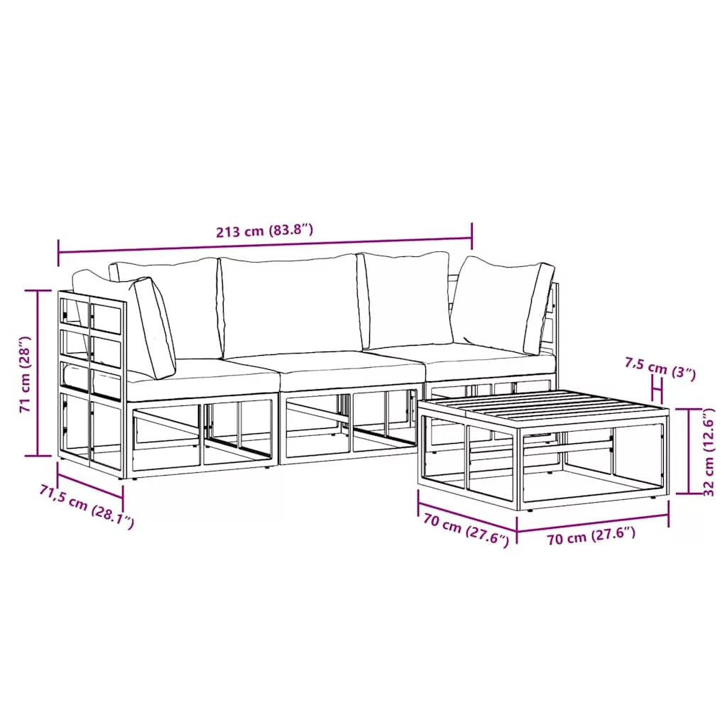 A Párnákkal ellátott Kert Fotel Szett modern és minimalistikus esztétikát áraszt, tökéletesen kiegészítve bármilyen kültéri teret, különösen kerteket és teraszokat. Egyszerű, de funkcionális kialakításával a szett kényelmesen befogadja a kültéri összejöveteleket, barátságos és vonzó légkört teremtve. Anyagok: Ez a kertfotel szett robusztus alumínium vázat tartalmaz, mely ismert könnyűségével és korrózióálló tulajdonságaival, biztosítva a tartósságot. A váz porszórt a biztonságos és védő finis réteg érdekében, amely javítja az esztétikai és funkcionális szempontokat, így modern megjelenést kínál. Beleértett alkatrészek: Élvezd a kényelmet két sarokelemmel, egy középső üléssel és egy kertasztallal, amelyek mind a formát és a funkciót ötvözik. Minden üléshez egy levehető kültéri párna tartozik, amely vízálló és poliészterből készült, míg az ülések anyagaként időjárásálló textilén kerül felhasználásra, tökéletes kültéri körülményekhez. Funkciók / Használat / Dizájn: A szett moduláris kialakítása lehetővé teszi az egységek elrendezésének sokoldalúságát, igazodva bármilyen kültéri térhez vagy tevékenységhez. Ez a sokoldalú jellemző fokozza a felhasználói élményt, kínálva a változatos konfigurációs lehetőségeket kompakt és tágas kültéri környezetben is, megőrizve a letisztult, kiegyensúlyozott modern stílust. Ajánlott használat: Tökéletesen illeszkedik a kertek és teraszok díszítéséhez, a szett javítja a kültéri dekorációt kifinomult, letisztult vonalaival. Kiválóan alkalmas egyéni pihenésre, vendégek szórakoztatására vagy egyszerűen a kültéri stílus élvezésére, egyesítve a funkciót és a szépséget a térben. Karbantartás és gondozás: A kültéri bútorok szépségének és használhatóságának megőrzése érdekében védő vízálló huzatok használata ajánlott kedvezőtlen időjárás esetén. A párnák, biztonságos cipzárral zárva, könnyen tárolhatók vagy tisztíthatók szükség esetén, folytatva a kényelmet és a kényelmet.