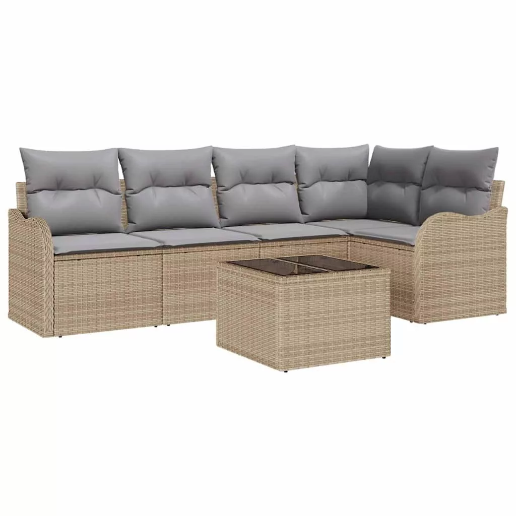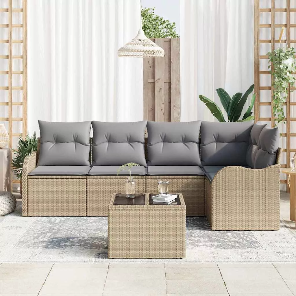 vidaXL Kerti Kanapé Szett párnával 6 pcs Bézs Poli rattan