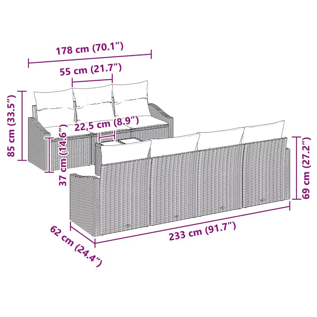 Ez a Kerti Párna Szett egy modern érintést ad a kültéri területeknek letisztult vonalaival és elegáns dizájnjával. A nyárra készült, egyszerű funkciókat vegyít stílusos megjelenéssel, bármilyen kertet vagy teraszt trendi találkozó hellyé alakítva. Tökéletes választás társasági eseményekhez, barátságos hangulatot teremtve a beszélgetéshez és pihenéshez a nap alatt. A moduláris dizájn lehetővé teszi, hogy testre szabhasd a beállítást, amit bármilyen eseményhez jól tudsz alkalmazni. Anyagok: Polirattanból és porszórt acélból készült a bútor szett, rendkívül tartós és időjárásálló. A poli rattan megóv a UV-sugaraktól, így napsütésben is remekül néz ki. A masszív váz stabilitást ad, míg a porszórt felület elegáns külsőt biztosít, védve a környezeti hatásoktól. Benntartozó alkatrészek: Ez a szett három középső ülést, négy karosszéket és egy központi asztalt tartalmaz, ami szuper jó kültéri étkezésre vagy laza együttlétre, így teljesen új szintre emeli a kültéri terek bármelyikét. A párnázott ülések és karfa extra kényelmet nyújtanak a meleg nyári estéken. Jellemzők / Funkció / Dizájn: A moduláris felállás lehetővé teszi, hogy a részeket a tér vagy az esemény kívánságai szerint rendezd át, így verhetetlen rugalmasságot ad. Ez a funkció kicsi összejövetelek és nagyobb társadalmi események esetén is működik, így mindenki kényelmesen és stílusosan pihenhet. Ajánlott felhasználás: Tökéletes kertekhez, teraszokhoz vagy pavilonokhoz, ez a szett fényűző loungerekké alakítja a kültéri területeket, ideális szórakoztatásra vagy egyedül pihenésre. Hosszú nyári napokra készült, funkciót és stílust adva a kültéri élettereknek. Ápolás és karbantartás: Használaton kívül tartsd védőhuzat alatt, hogy megőrizzed éles kinézetét. A párnák könnyen leválaszthatók a cipzárok segítségével, így a takarítás gyerekjáték, és a szett évekig hívogató marad.