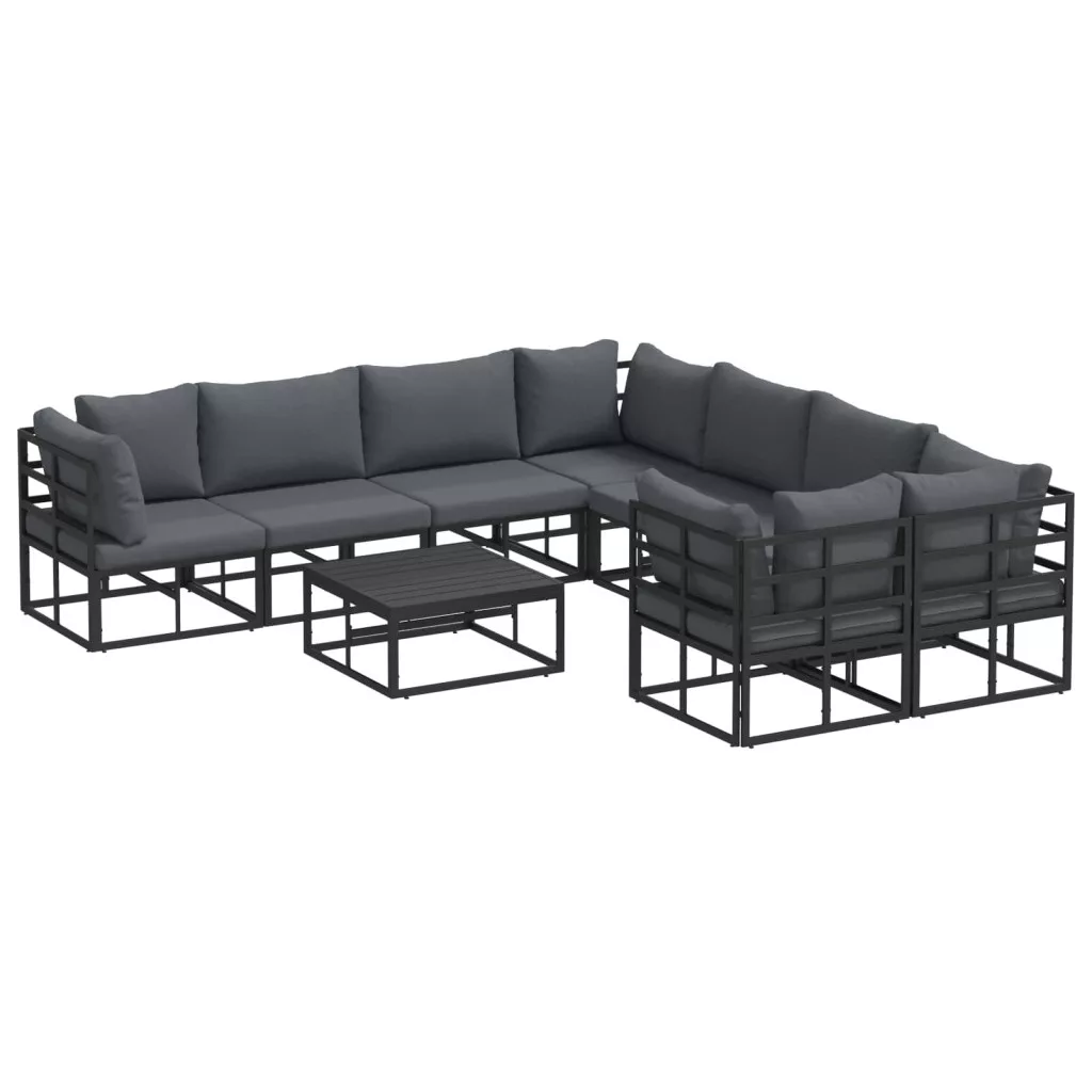 Ez a kerti kanapé szett könnyedén vegyíti a modern stílust a funkcionális dizájnnal, így remekül passzol bármilyen kültéri térhez. Letisztult vonalainak és egységes színeinek köszönhetően kortárs megjelenést biztosít, ami illeszkedik különböző kerti díszítésekhez. A jól párnázott ülések és tágas felületek hívogatóak, akár egy baráti összejövetelt, akár egy nyugodt délutánt töltesz a szabadban. Alumínium szerkezet: A kanapé szett prémium alumíniumból készült, így tartós és hosszú élettartamú. Stabil vázával bírja a kültéri kihívásokat, erős támaszt és stabilitást ad, miközben megőrzi letisztult és elegáns megjelenését. Kültéri párnák: A kanapé szettben található puha, időjárásálló párnák a kényelem érdekében lettek tervezve. A párnák kényelmes ülést biztosítanak, elég strapabírók ahhoz, hogy bírják az időjárás viszontagságait, így sokáig élvezheted a kültéri pihenést. Rugalmas összetétel: Ez a moduláris elrendezés lehetővé teszi a testreszabhatóságot, a klasszikus elrendezésektől a különböző kombinációkig. Ez a rugalmasság biztosítja, hogy tökéletesen illeszkedjen bármilyen kültéri térbe, segítve a sokoldalúságot és a személyes stílust. Egyszerű karbantartás: Ennek a kanapé szettnek a dizájnja könnyen karbantartható. Csak egy száraz rongy kell a felületek letörléséhez, hogy meg tudd őrizni a tisztaságot. Egy vízálló takaróval extra védelmet adhatsz neki, ami tovább növeli az élettartamát. Teljes beállítás: A szett tartalmaz négy sarokülőt, négy középső ülést és egy alacsony profilú kerti asztalt, így bőséges helyet ad társasági összejövetelekhez vagy intim pihenéshez, miközben fokozza a kert esztétikáját.