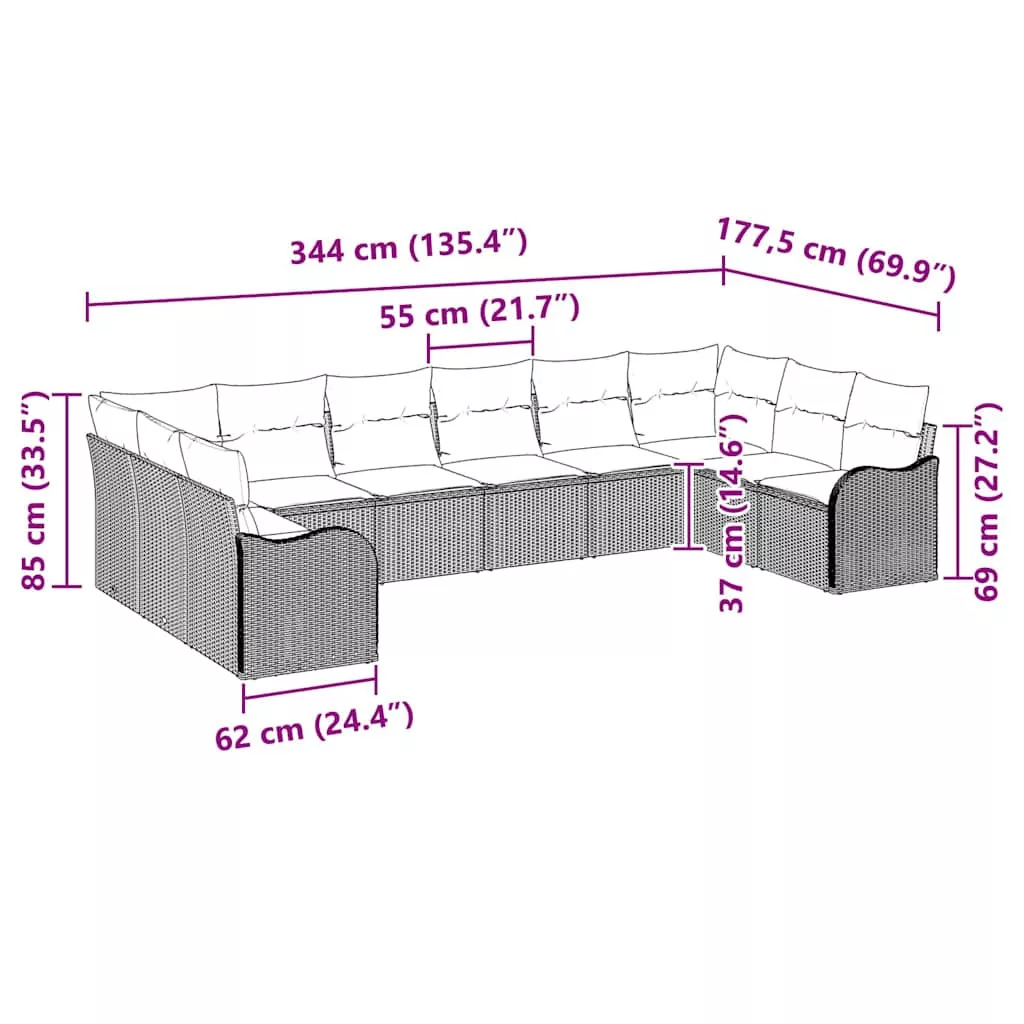 vidaXL Kerti Kanapé Szett tárolóval 10 pcs Bézs és fehér polirattan
