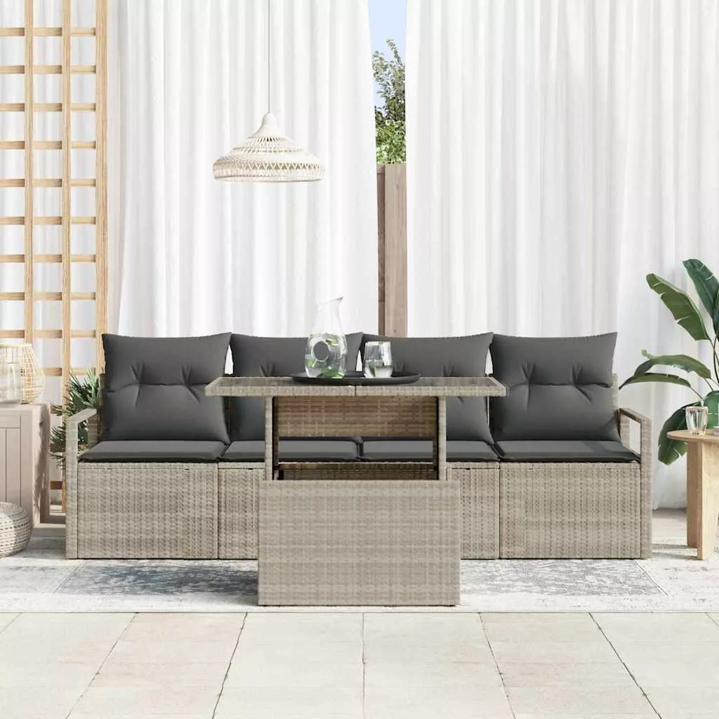 Kerti Kanapé Szett tárolóval 5 pcs Világosszürke Poli rattan