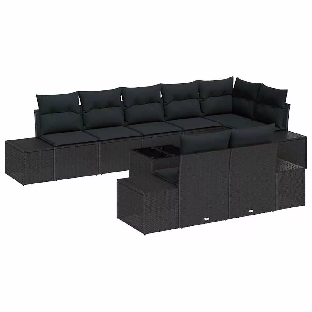 vidaXL Kerti Kanapé Szett tárolóval Fekete Poli rattan