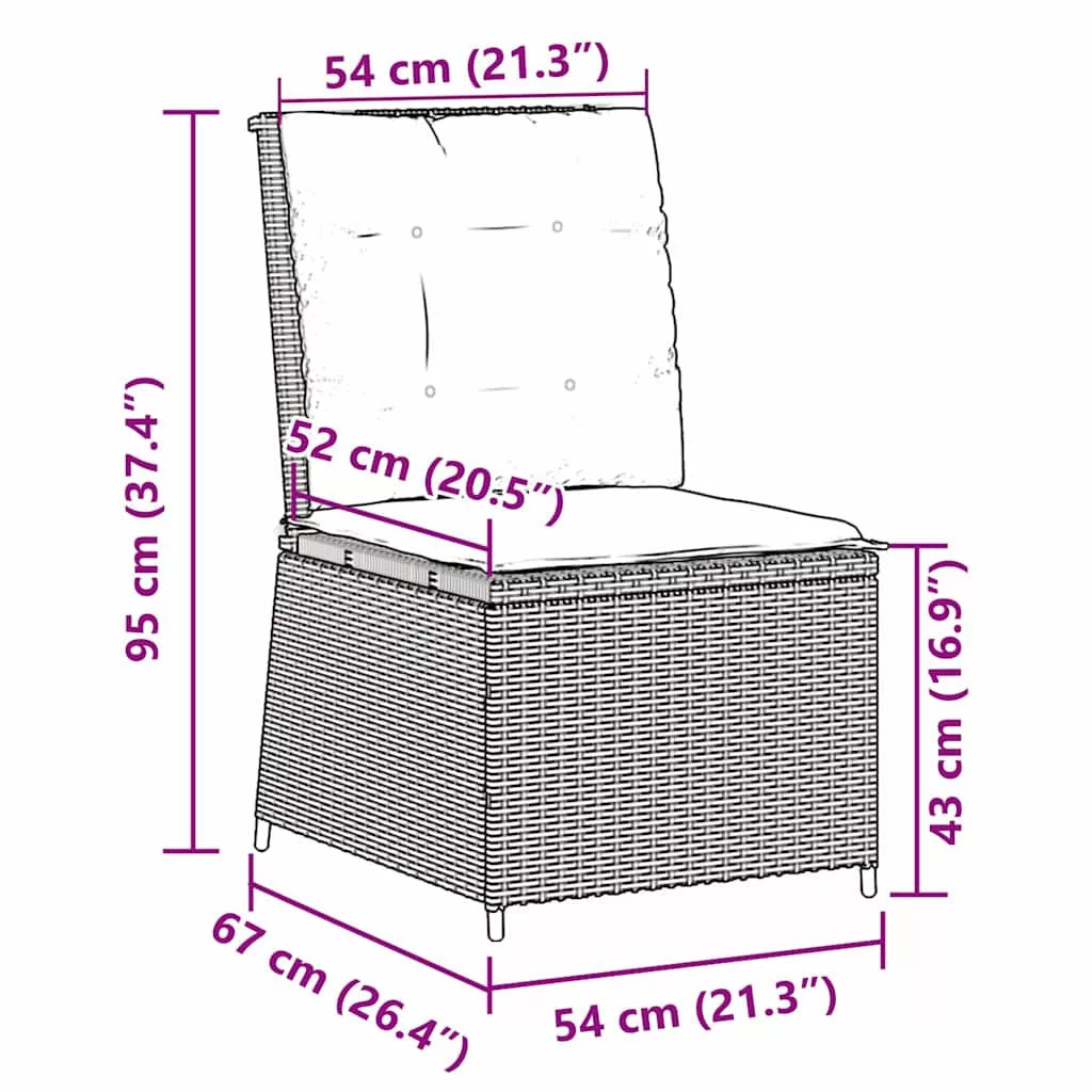 Ez a dőlésszögbe állítható kerti kanapé ötvözi a menő stílust és a praktikus használatot, perfekt a kültéri helyed feldobásához. A sima, téglalap alakú forma és a modern hangulat bárhová jól illik, szép helyet teremt a pihenéshez. Könnyed dizájnjával és rugalmas háttámlájával megfelel mindenféle pihenési igénynek, legyél akár napfényben sütkérező vagy szép naplementét élvező. Merülj el a kényelemben és stílusban ezzel a sokoldalú üléssel. Modern és Sleek Dizájn - Tiszta vonalaival és téglalap alakjával a kerti kanapé elegáns érintést ad bármilyen kültéri helyszínnek. Modern kinézete még jobban kiemeli a ötletes tervezést, ami a kényelemre és stílusra összpontosít. Időjárásálló Anyagok - UV-álló poli rattanból készült, a kanapé jól néz ki még erős napsütés után is. Az erős fémszerkezet és az időjárásálló párnák remek választás kültéri használatra. Állítható Háttámla Funkcionalitás - Egyszerűen változtathatod a több pozícióban állítható háttámla szögét, hogy megtaláld a legkényelmesebb fekvőhelyet, akár olvasol, akár csak relaxálsz. Könnyű Karbantartás - Könnyen karbantartható; csak egy gyors törlés száraz ruhával elég ahhoz, hogy szép és tiszta maradjon, így stressz nélkül élvezheted. Kültéri Kényelem - A kényelmes poli rattan háttámlával és időjárásálló párnával ez a kanapé az ellazulásról szól a szabadban. Ergonomikus dizájnja hosszú távú kényelmet biztosít. Maximum 110 kg ülésenként. Ügyeljen a nyílt tűz és más erős hőforrások veszélyére a termék közelében.