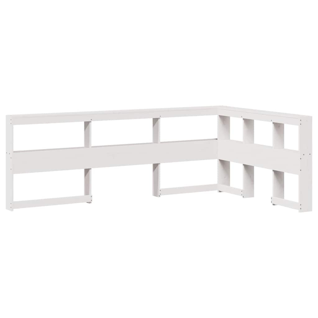 Könyvespolc fejtámla L-alakú fehér 120 cm tömörfa fenyőfa