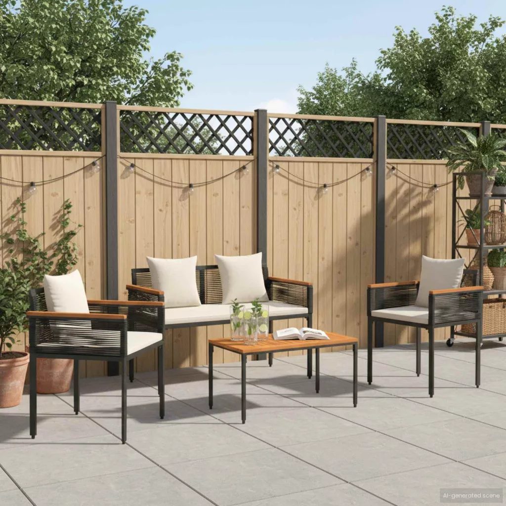vidaXL Kültéri Bútor Szett 4 pcs Fekete és krémfehér PE Rattan