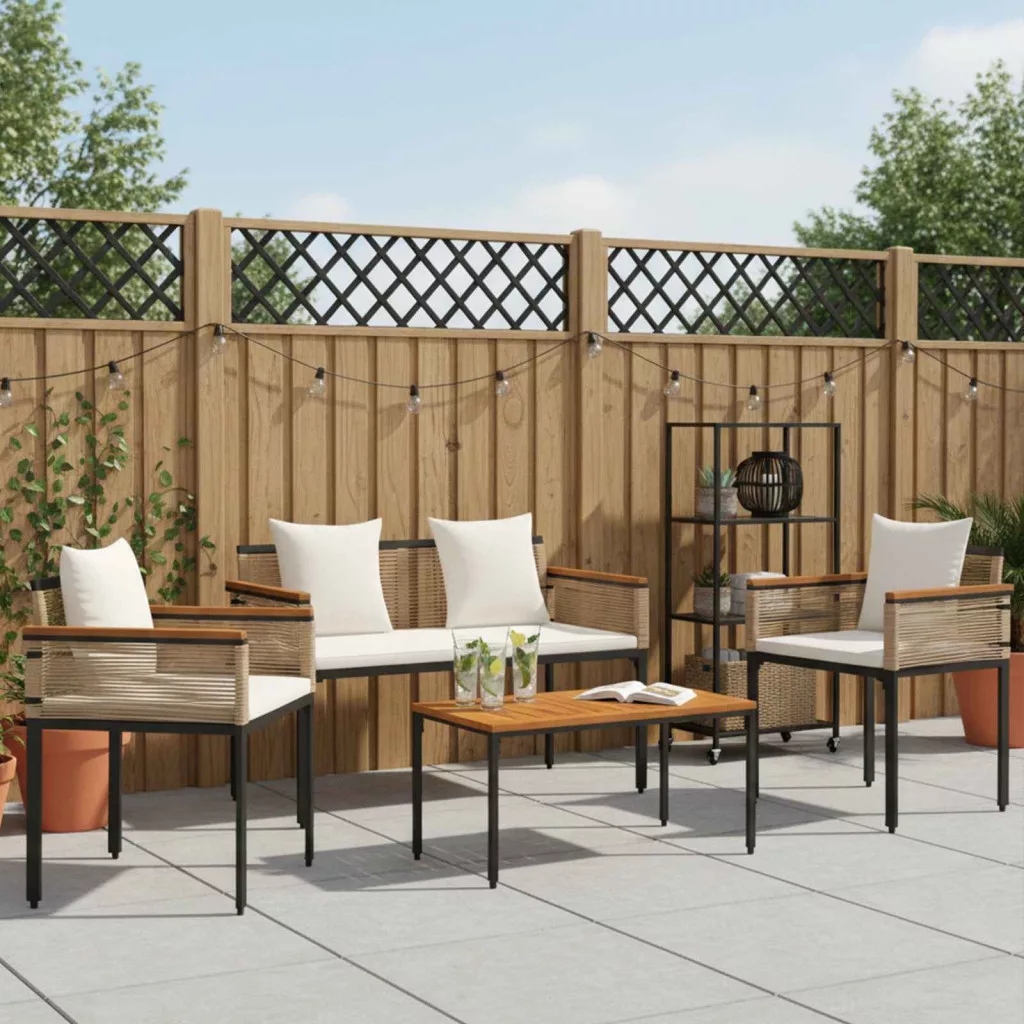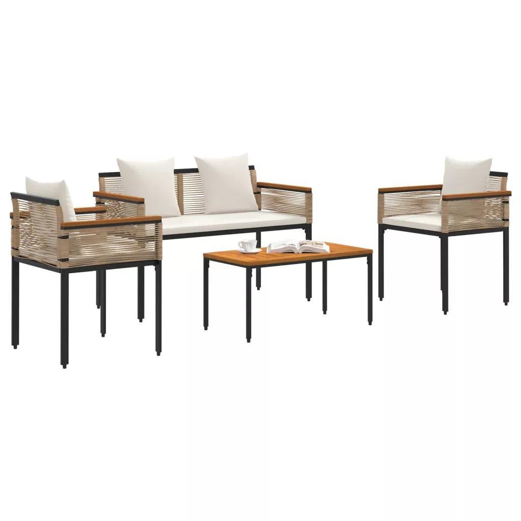 vidaXL Kültéri Bútor Szett párnával 4 pcs Beige és Krémszínű PE Rattan