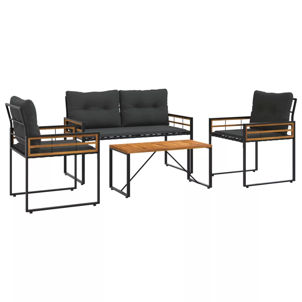 Ez a modern kültéri bútor szett a kortárs eleganciát hozza el a beltéri és kültéri tereidbe. Az forma és funkció egyesítése érdekében tervezett szett sima felületekkel és letisztult formákkal várja, hogy bármely stílusban jól mutasson. Akár a teraszon, erkélyen, kertben vagy napfényes szobában használod, ez a bútor szett luxus helyet ad a pihenéshez és szórakozáshoz. Az impozáns fekete keret és a poliészter párnák biztosítják a vizuális vonzerőt és a tartós kényelmet. Sokoldalúsága pedig alkalmassá teszi a laza összejövetelekhez és az egyedül eltöltött időhöz is, fokozva bármilyen tér hangulatát. Kifinomult anyagkombináció A bútor szett akácfából és porszórt acélból készült, ami eleganciát és tartósságot ad neki. Ez a párosítás UV-állóságot biztosít, míg a vonzó textúra kiemeli a dekorációt és a megbízhatóságot a beltéri és kültéri használatra. Kedvező alkatrész dizájn Az egész szett szilárd akácfa felülete robusztus, mégis stílusos vonzalmat teremt. A porszórt acél háttámla és ülés mindegyik rész hozzájárul a masszív kerethez. Ez a megbízhatóság akár órákig tartó szórakozást is nyújt, vendégek fogadása vagy egyedül pihenés során. Kényelem és ergonómia Tapasztald meg a fantasztikus kényelmet a könnyen levehető poliészter párnákkal. A struttúrált dizájn kényelmes ülést biztosít, megtartva a stílust és a puha támogatást. A lapos karfa kialakítás pihentető ülést segít kialakítani, növelve így a kényelmet minden egyes használat során. Széles alkalmazási terület A medencék mellett a kényelmes kerti időtöltésekhez ez a bútor szett könnyedén alkalmazkodik különböző környezetekhez. Bármely helyszínhez illeszkedik, így sokoldalú választást ad azoknak, akik szeretnék felfrissíteni otthonuk dekorációját. Könnyű karbantartás A felhasználói kényelem jegyében tervezve a párnák minimális gondozást igényelnek. Egyszerűen tárold őket hűvös, száraz helyen, ha nem használod őket, és kerüld a durva elemeket, hogy megőrizd szép állapotukat és hosszabb ideig élvezhesd őket.