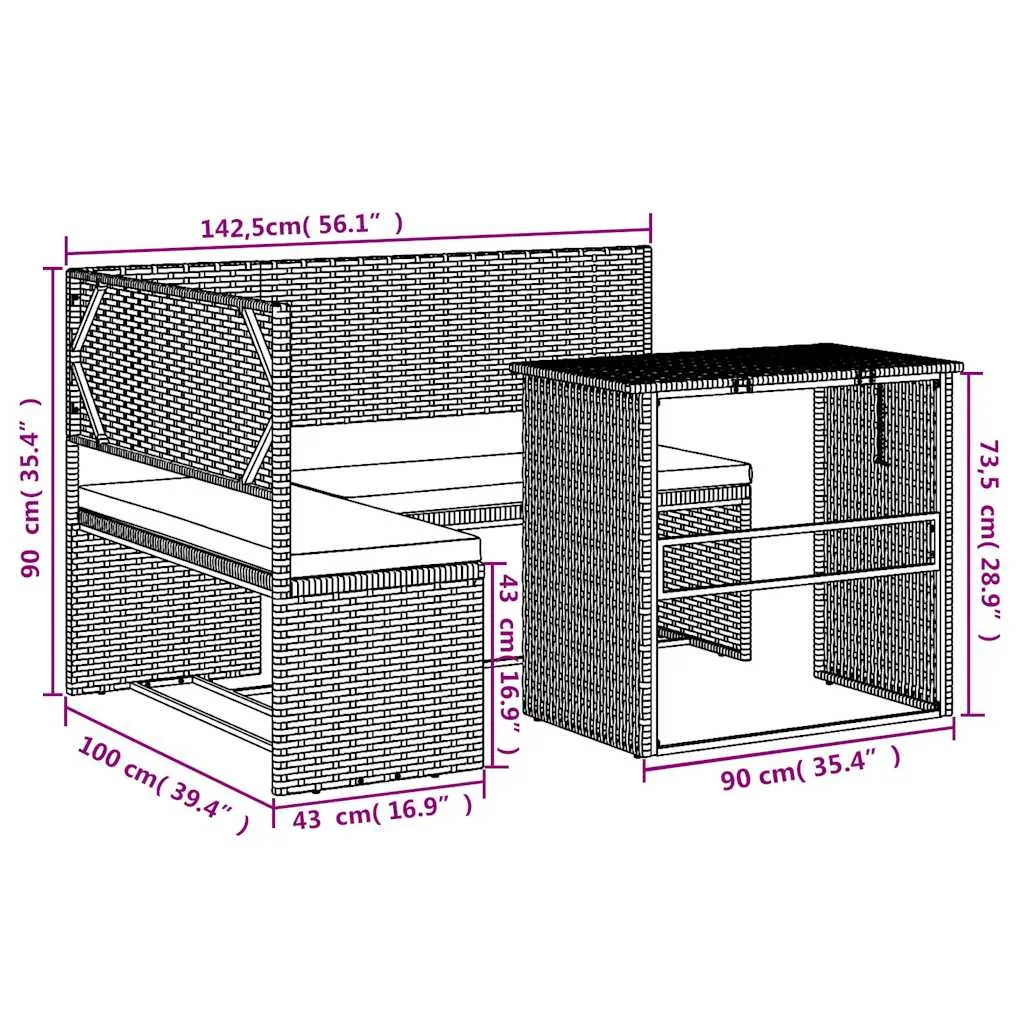Ez az L-alakú kerti kanapé tökéletes kiegészítője kertjének, teraszának vagy udvarának, kényelmes és hívogató teret biztosítva a családdal és a barátokkal való csevegéshez, vagy egyszerűen csak pihenéshez a szabadban. Tartós anyag: A PE rattan, más néven polyrattan, egy erős, kevés karbantartást igénylő szintetikus anyag, amely úgy néz ki, mint a természetes rattan. Könnyű, könnyen tisztítható, tartóssága és időjárásálló tulajdonságai miatt gyakran használják kültéri bútorok készítéséhez.Kényelmes ülőélmény: Ez a vastagon bélelt párnákkal kiegészített kültéri bútor kényelmes ülőélményt kínál.Robusztus és stabil váz: A porszórt acél váz biztosítja, hogy a kerti bútor erős és stabil legyen a mindennapi kültéri használathoz.Összecsukható kialakítás: Ez a kerti asztal a helytakarékosság érdekében használaton kívül összecsukható. Jó tudni:A kültéri bútor szépségének megőrzése érdekében javasoljuk, hogy vízálló huzattal fedje be.