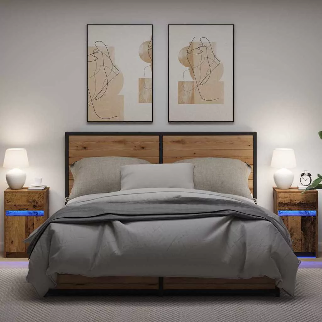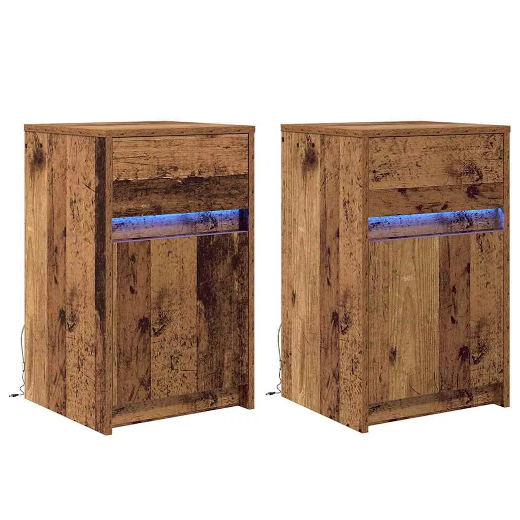 LED Éjjeli Szekrény 2 pcs Régi fa 38 x 34 x 61 cm Faanyag